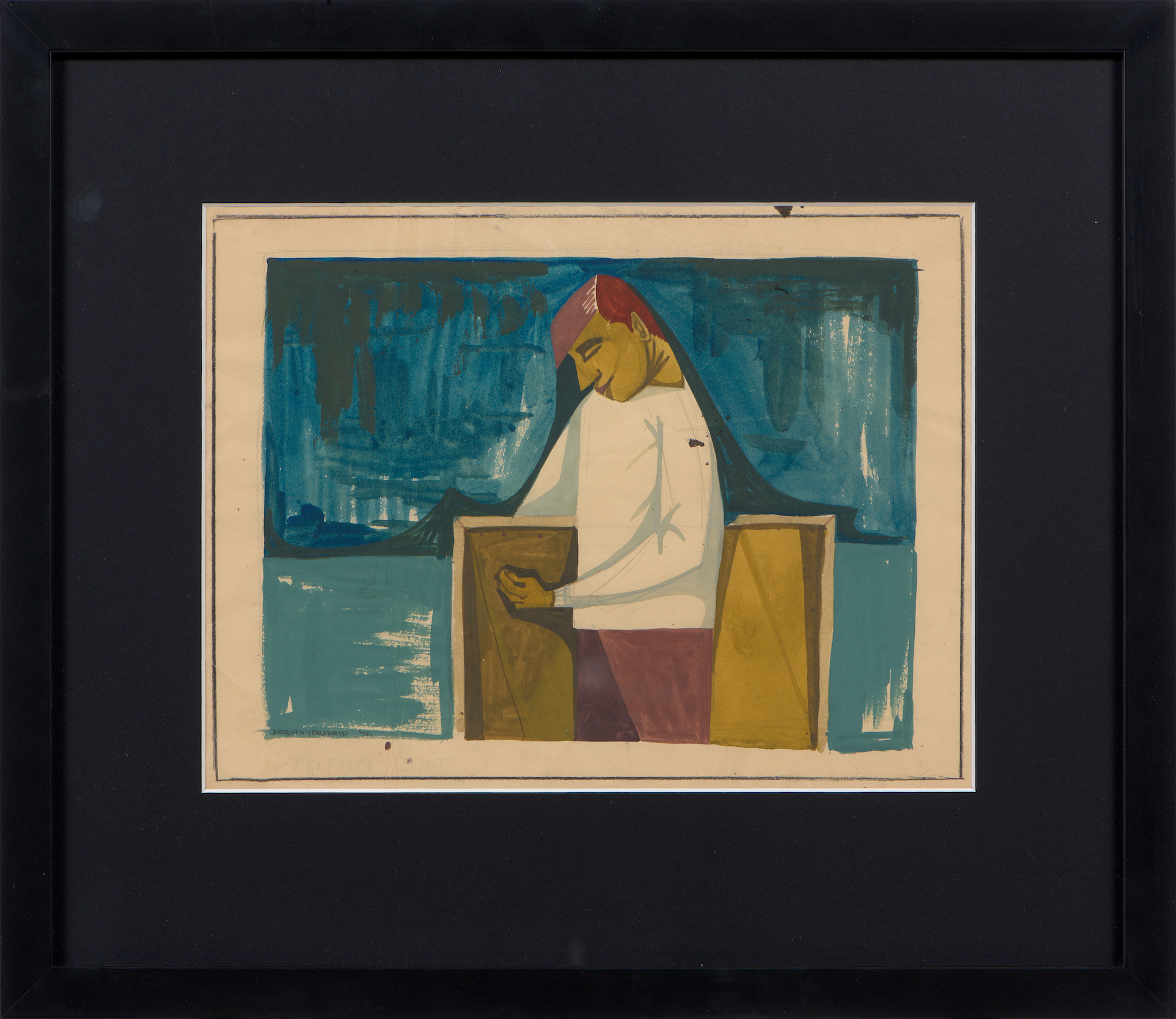 Paper is showing signs of aging. Creases, handling marks and cockling are present. Paper has yellowed slightly. All expected with age. Overall frame measuring 38 x 44cm
