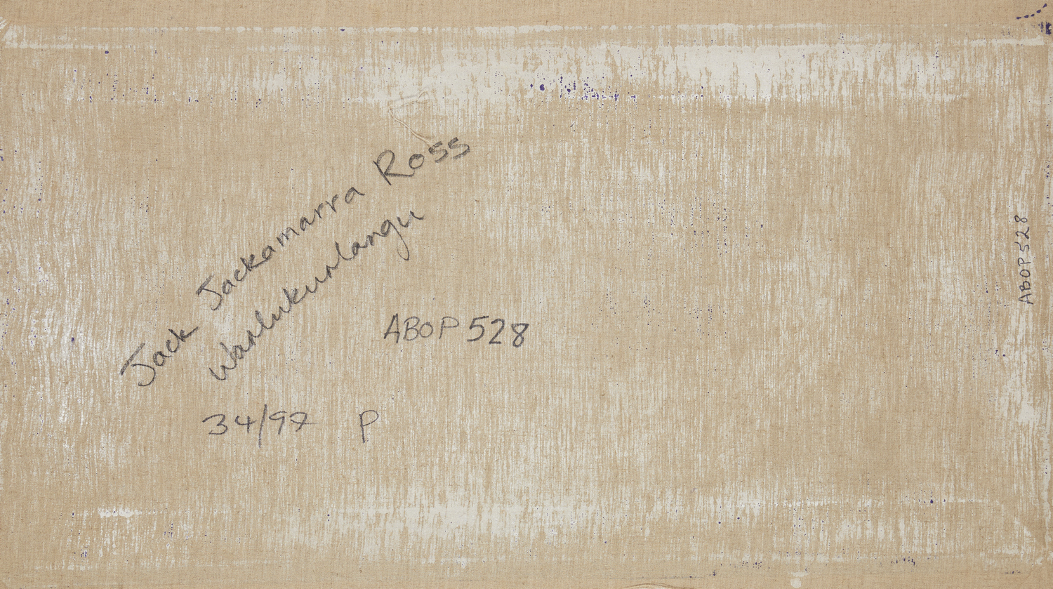 inscribed verso with artist's name and Warlukurlangu Artists Aboriginal Corporation cat. no. 34/97