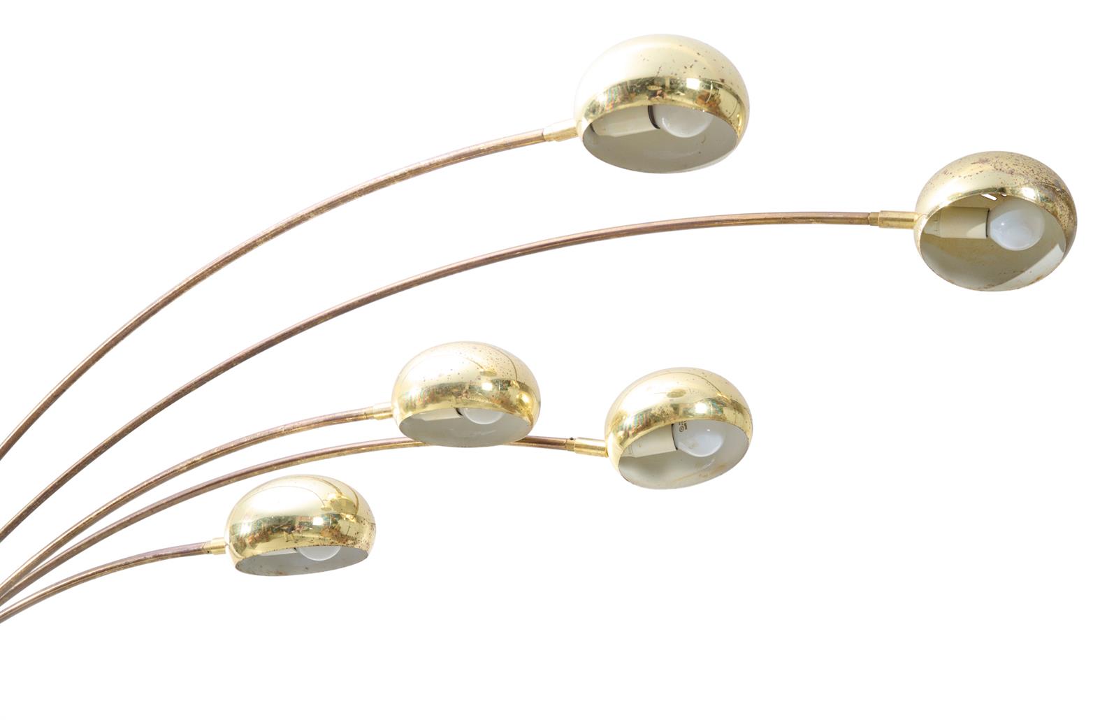 Significant signs of age to gold chrome and metal. On/off pull string is missing. Plastic ring has popped loose. General wear and marking to marble base, consistent with age and use. Scandinavian plug. Overall in fair condition.