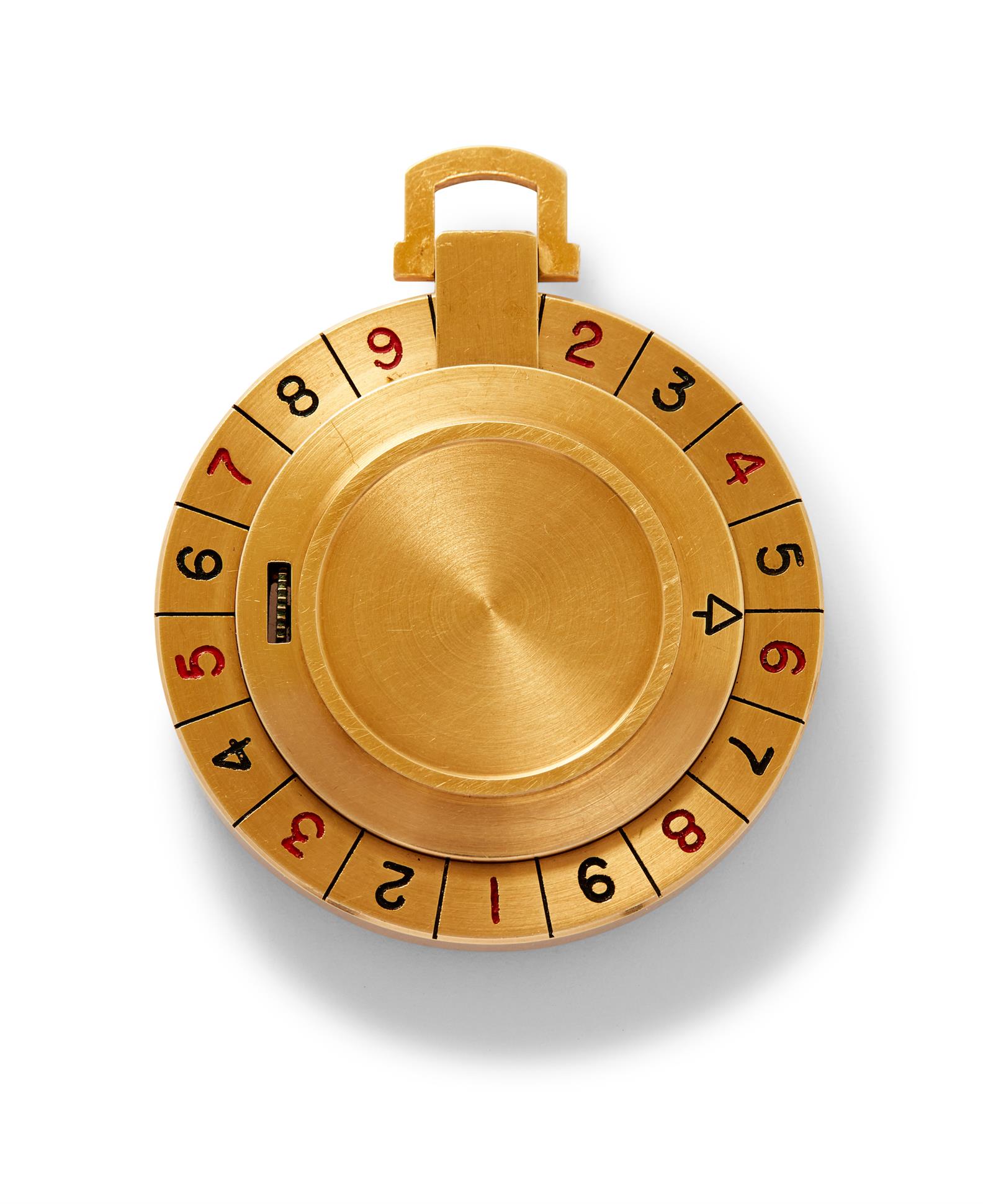 JAEGER LECOULTRE. A FINE AND UNUSUAL 14CT GOLD KEYLESS DRESS POCKET WATCH WITH SILVER DIAL AND SPINNING OUTER ROULETTE WHEEL, CIRCA 1940