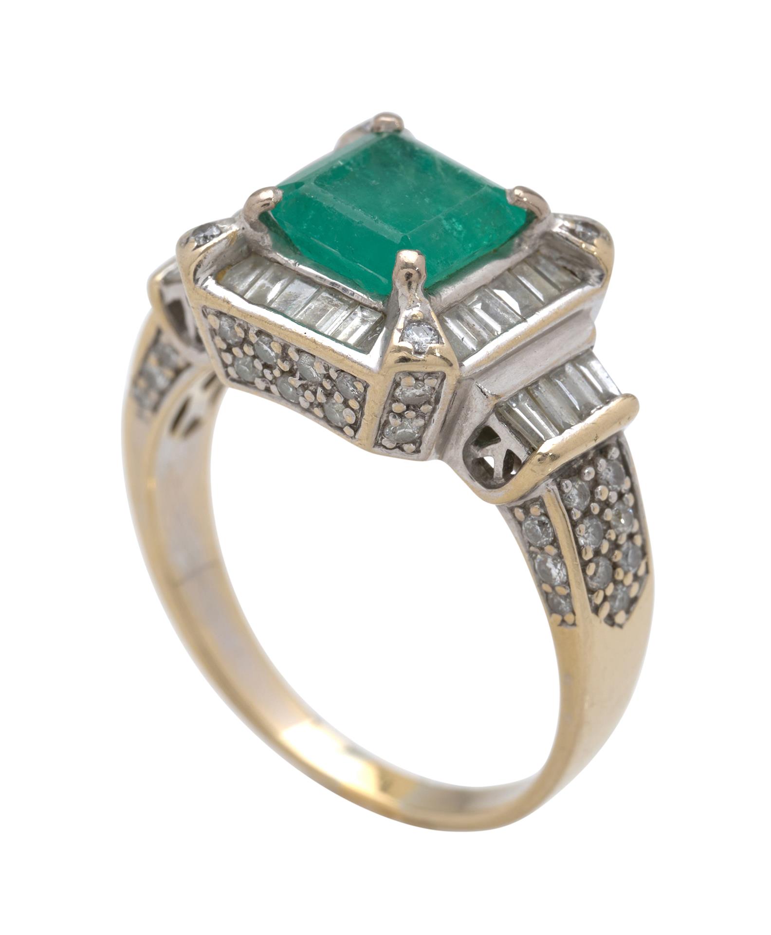 AN EMERALD AND DIAMOND RING IN 18CT WHITE GOLD, WITH RECEIPT, THE EMERALD LISTED AS APPROXIMATELY 4CTS WITH DIAMONDS TOTALLING APPROXIMATELY 1CT, RING SIZE R, 7.55GMS