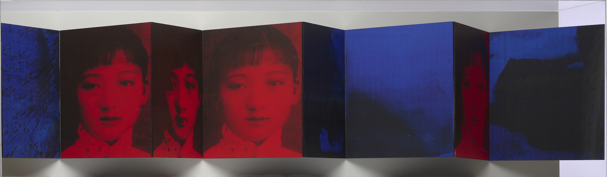 All three concertina panels are in good condition and affixed to backing board securely. There are some scratches and marks seen to the perspex box casing. There is a crack in the base of two of the panels. Red, approxiamtely 7cm in length and Orange approximately 4cm in length.
