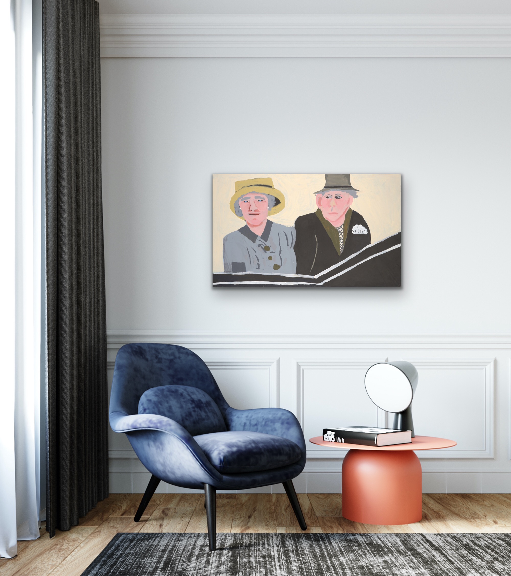 Vincent enjoys painting imagery of the royal family, painting portraits of the iconic figures, and representing them in joyful and celebratory depictions." (Iwantja Arts statement)