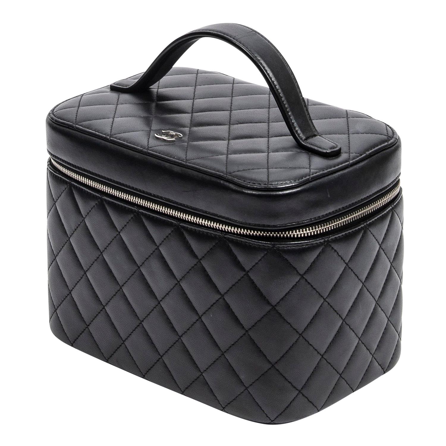 Styled in black quilted lambskin leather with silver tone metal hardware, 20 x 15 x 13cm.