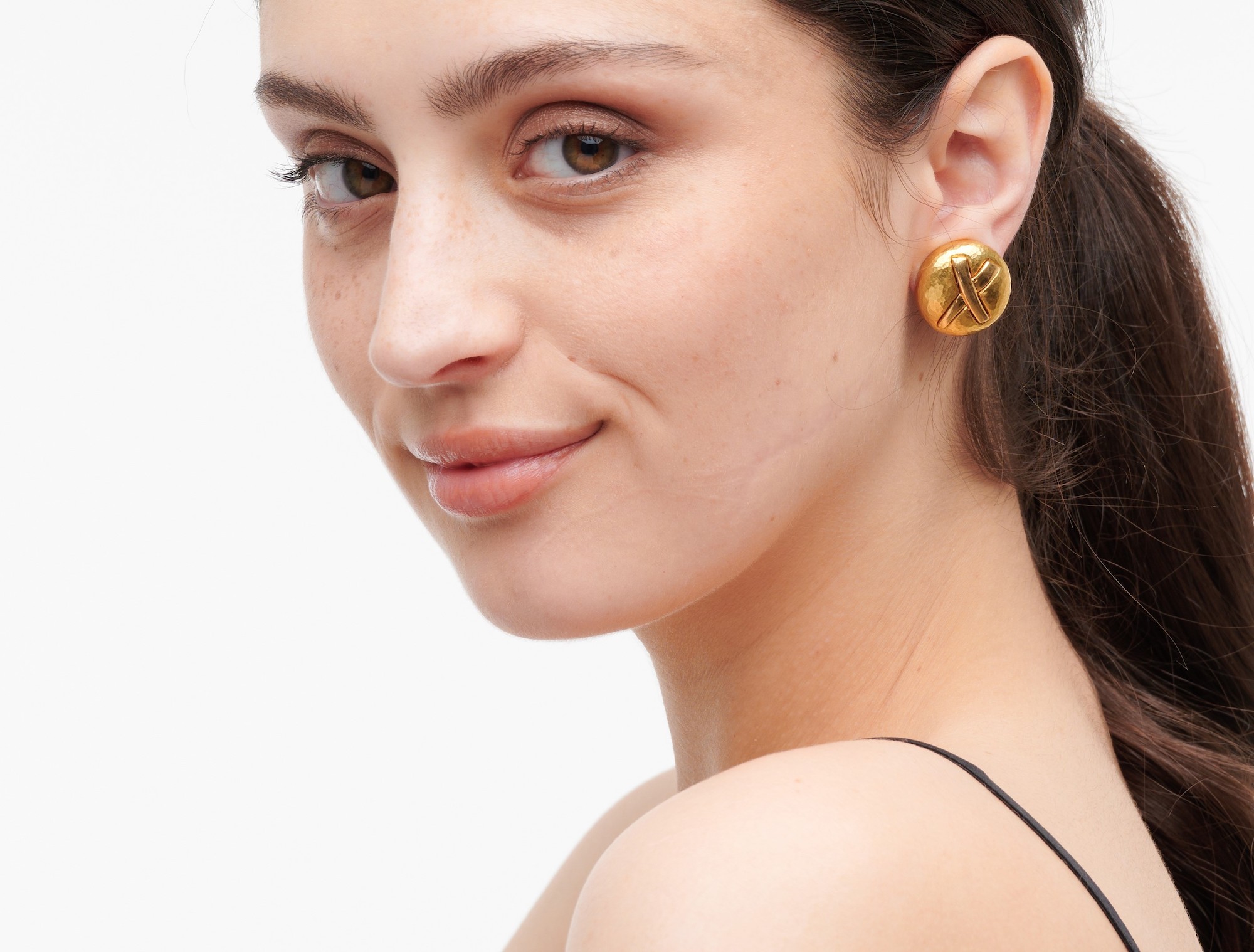 Each hammered bombé disc centring a polished X motif, signed Paloma Picasso, Tiffany & Co., to clip fittings, diameter approximately 31mm.