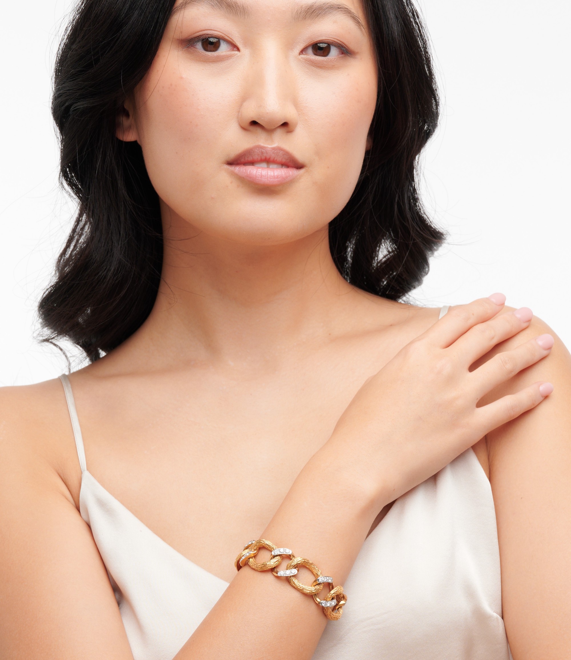 Comprising six textured oval links, spaced by polished diamond set links, the diamonds together weighing approximately 3.25 carats, completed by an invisible clip clasp, signed V.C.A. N.Y., 2V5234, length approximately 180mm.