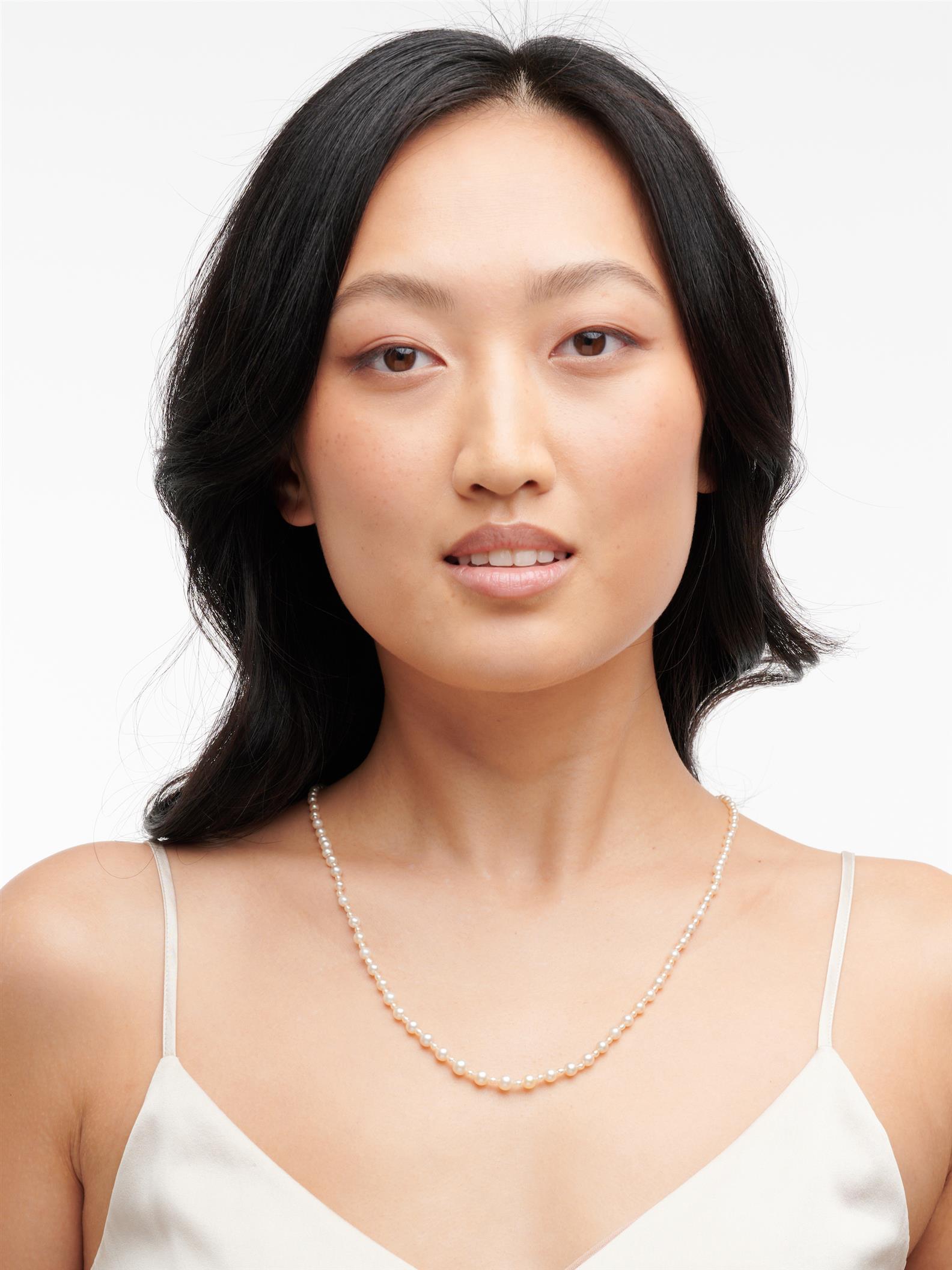 A PEARL NECKLACE TO A DIAMPOND SET CLASP IN 18CT WHITE GOLD, COMPRISING TWO HUNDRED AND TWENTY GRADUATED CULTURED PEARLS IN CREAM HUES, MEASURING APPROXIMATELY 2.30MM - 6.00MM, TO A GEOMETRIC CLASP SET THROUGHOUT WITH OLD EUROPEAN-CUT DIAMONDS, LENGTH APPROXIMATELY 680MM