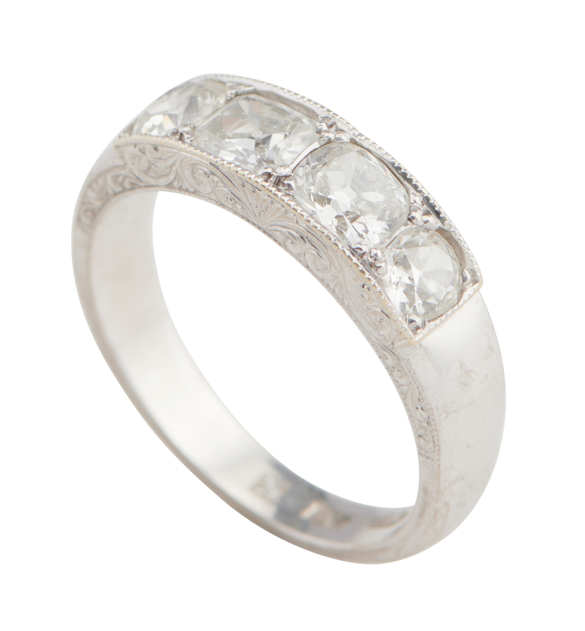 Comprising four claw-set mixed-cut diamonds together weighing approximately 1.10 carats, size R.