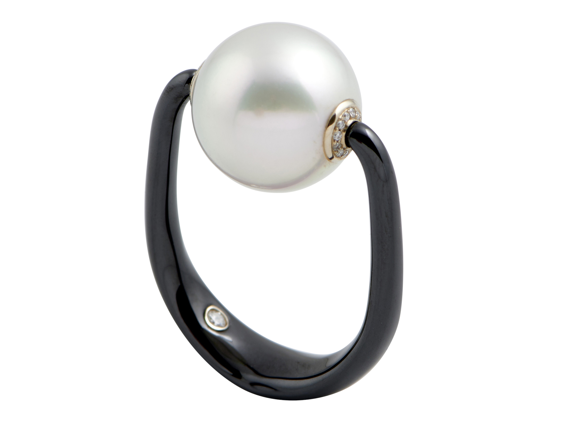 PASPALEY, CERAMIC, SOUTH SEA PEARL AND DIAMOND 'ODYSSEY' RING