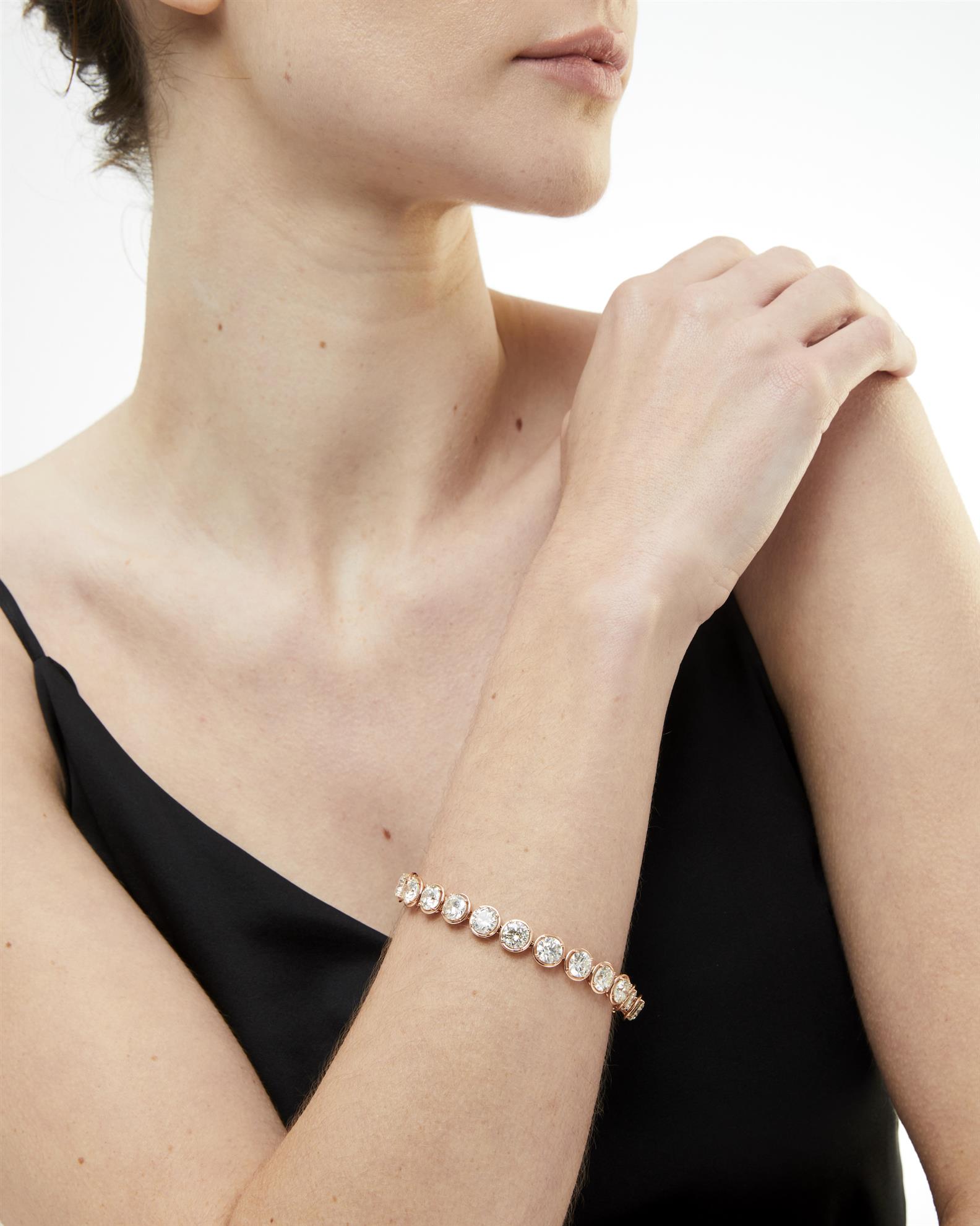 Composed of a line of 21 claw-set brilliant-cut diamonds in circular collets, completed by a concealed box clasp, the diamonds together weighing approximately 32.82 carats, mounted in 18ct pink gold, length 200mm.