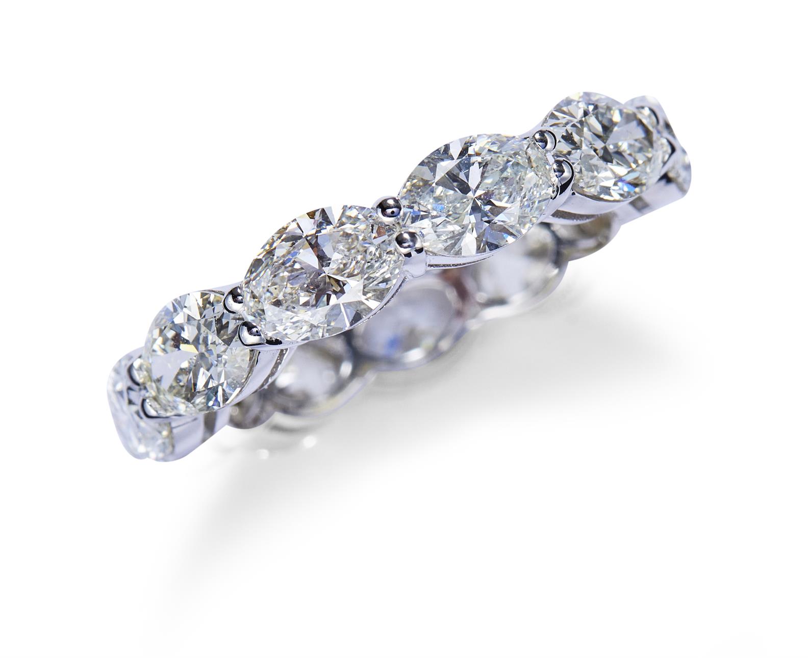Designed as a continuous row of 11 claw-set oval brilliant-cut diamonds together weighing 5.67 carats, mounted in 18ct white gold, size M1/2.