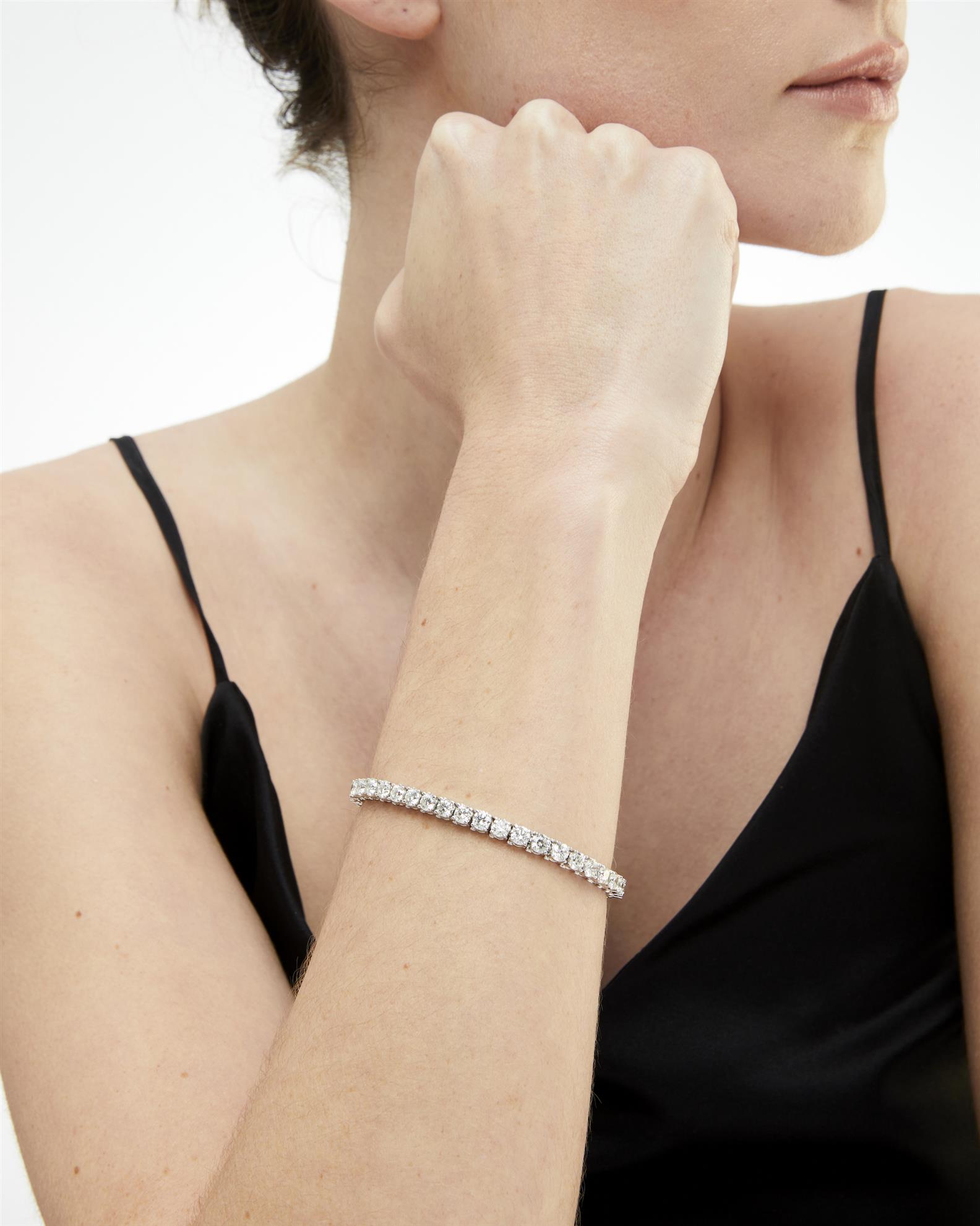 Composed of a line of 39 claw-set brilliant-cut diamonds completed by a concealed box clasp, the diamonds together weighing approximately 7.25 carats, mounted in 14ct white gold, length 180mm.