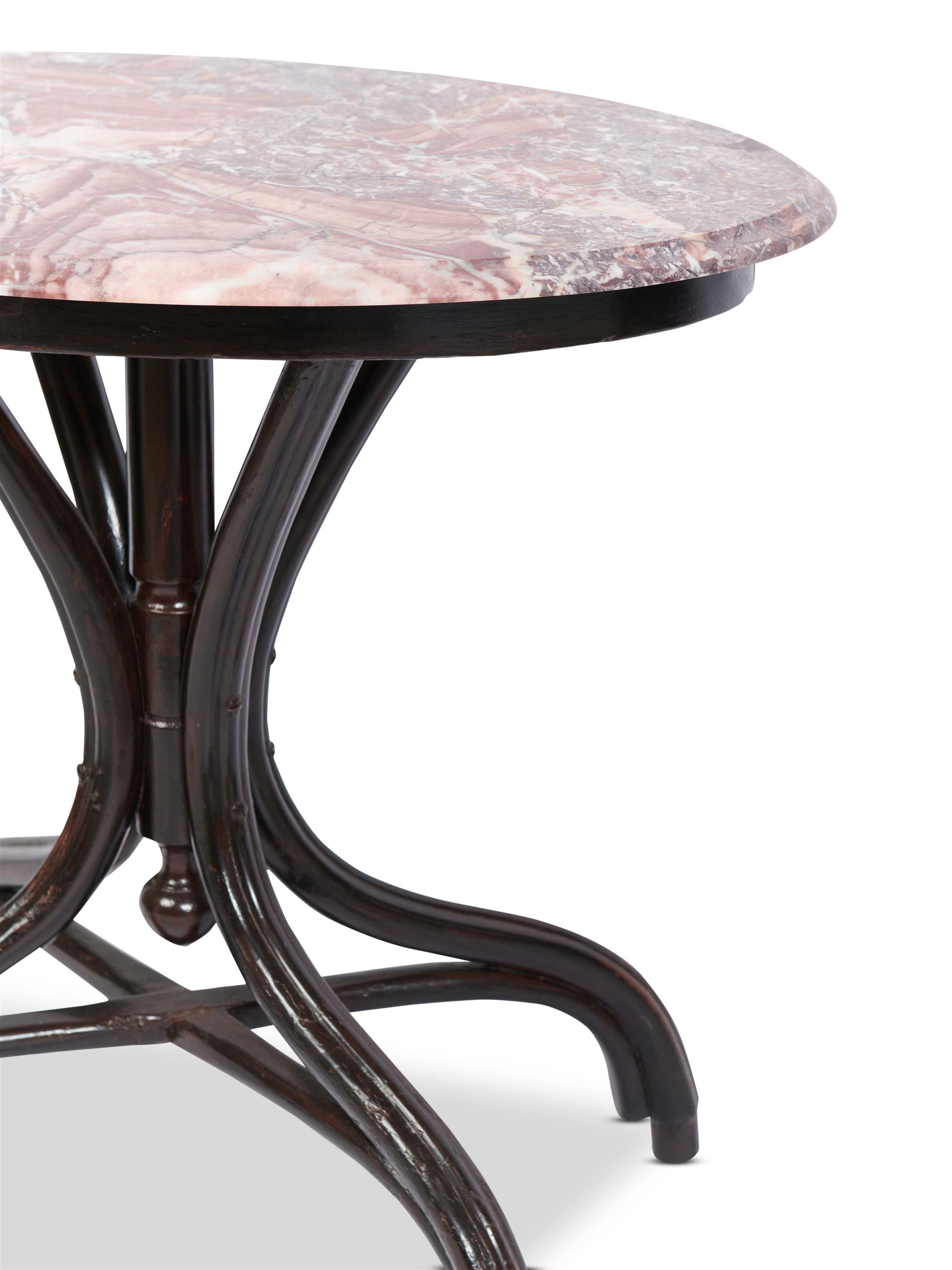 Marble top with ogee edge. Black Japanned base.