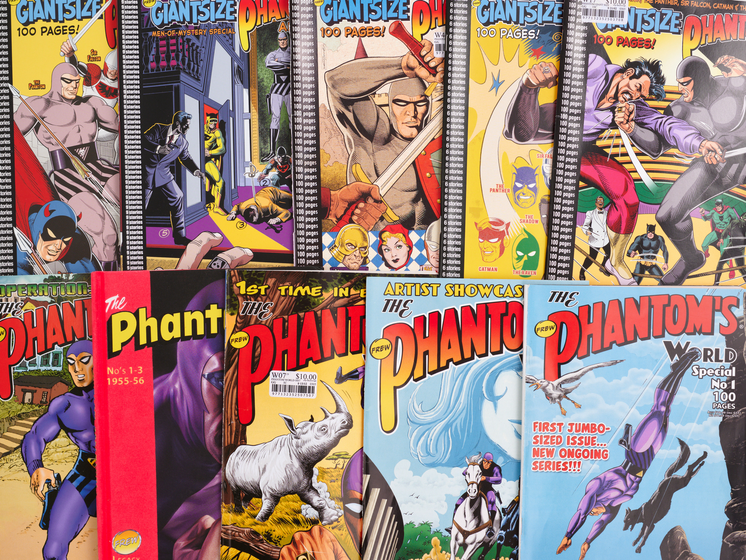 group comprising editions 3-26 (excluding 25), double 21, reprints together with "Phantom Adventure Collection", "Giantsize Phantom", "The Phantom encyclopedia", "The Phantom's world special" Tribute to Lee Falk and others, printed by Rotary Colorprint and others