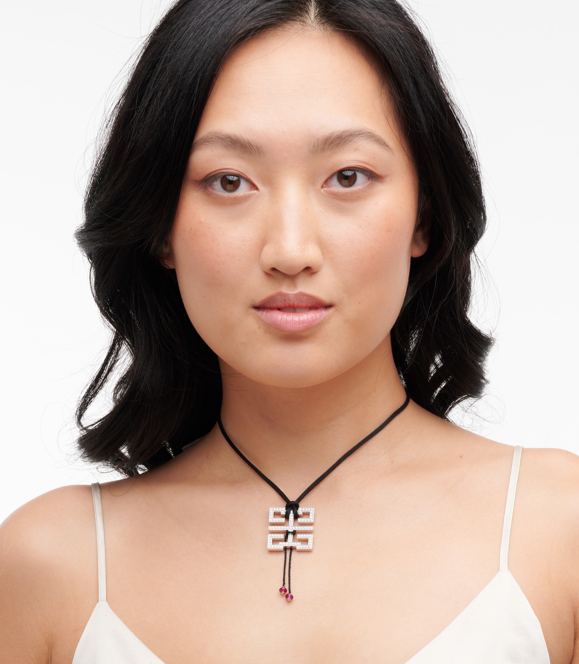 Featuring a geometric pendant of Oriental design, set throughout with pavé-set with brilliant-cut diamonds suspending a detachable black silk cord terminating in two ruby beads, to a black silk cord with geometric white gold clasp, signed Cartier and numbered 03210B, length approximately 370mm, accompanied by Cartier certificate and box.