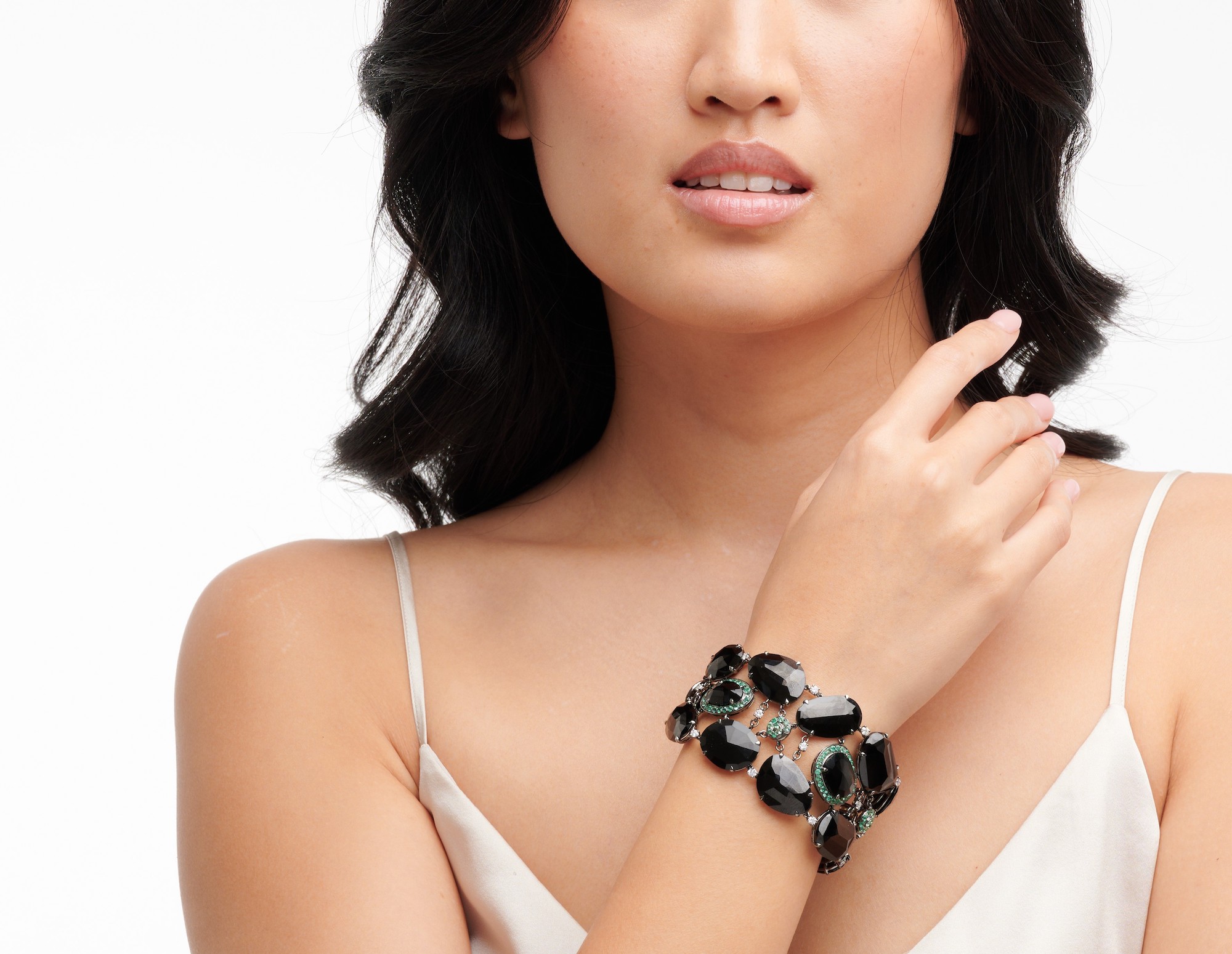 CERRONE, 18CT BLACKENED GOLD, SPINEL, EMERALD AND DIAMOND BRACELET