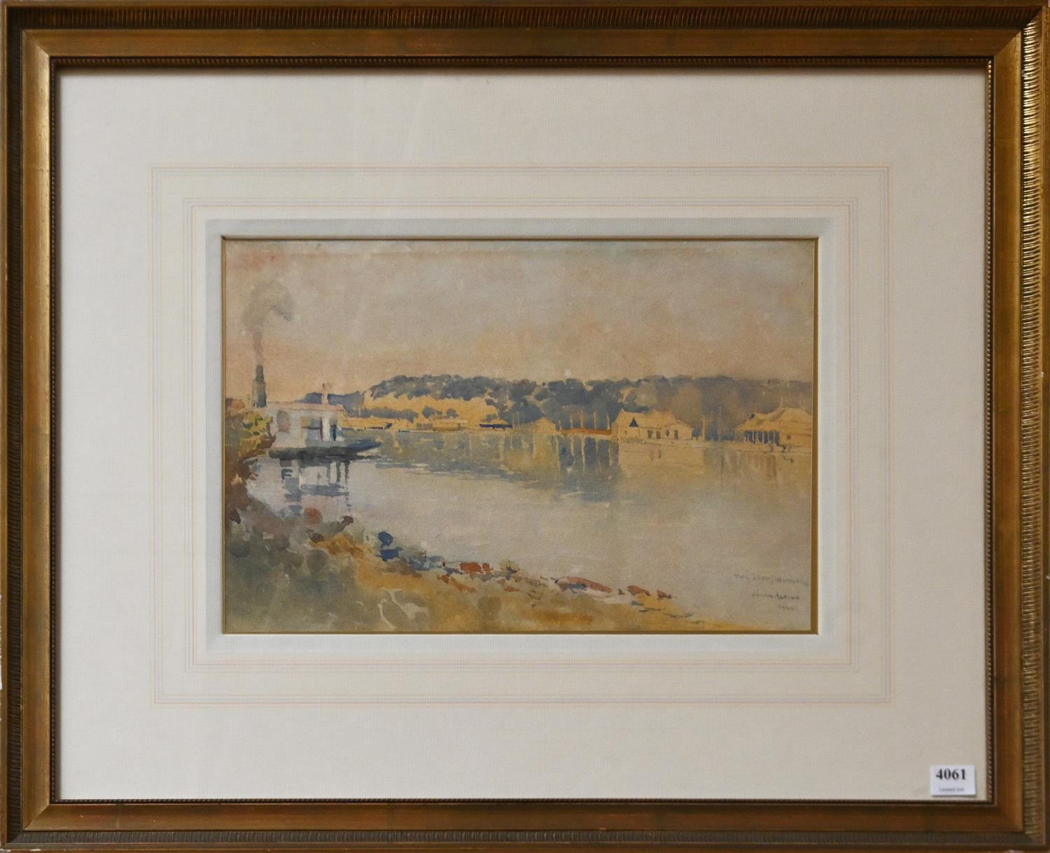 JULIAN ASHTON, THE SPIT - MORNING 1910, WATERCOLOUR, SIGNED AND DATED LOWER RIGHT, 23 X 34CM, FRAME SIZE: 50 X 61CM