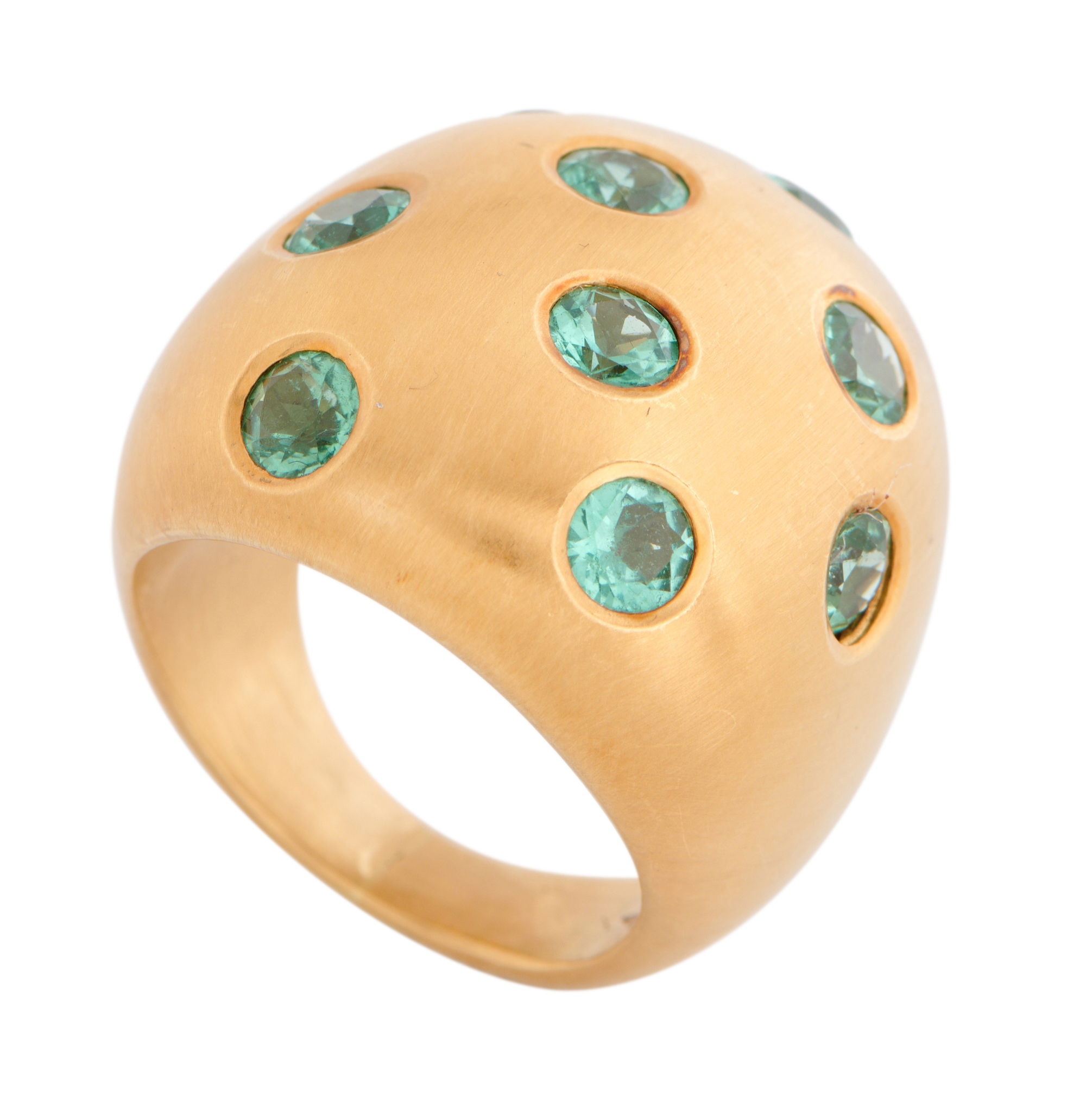 Of bombe design, hammer set with ten mint green circular-cut tourmalines, French marks, size M.