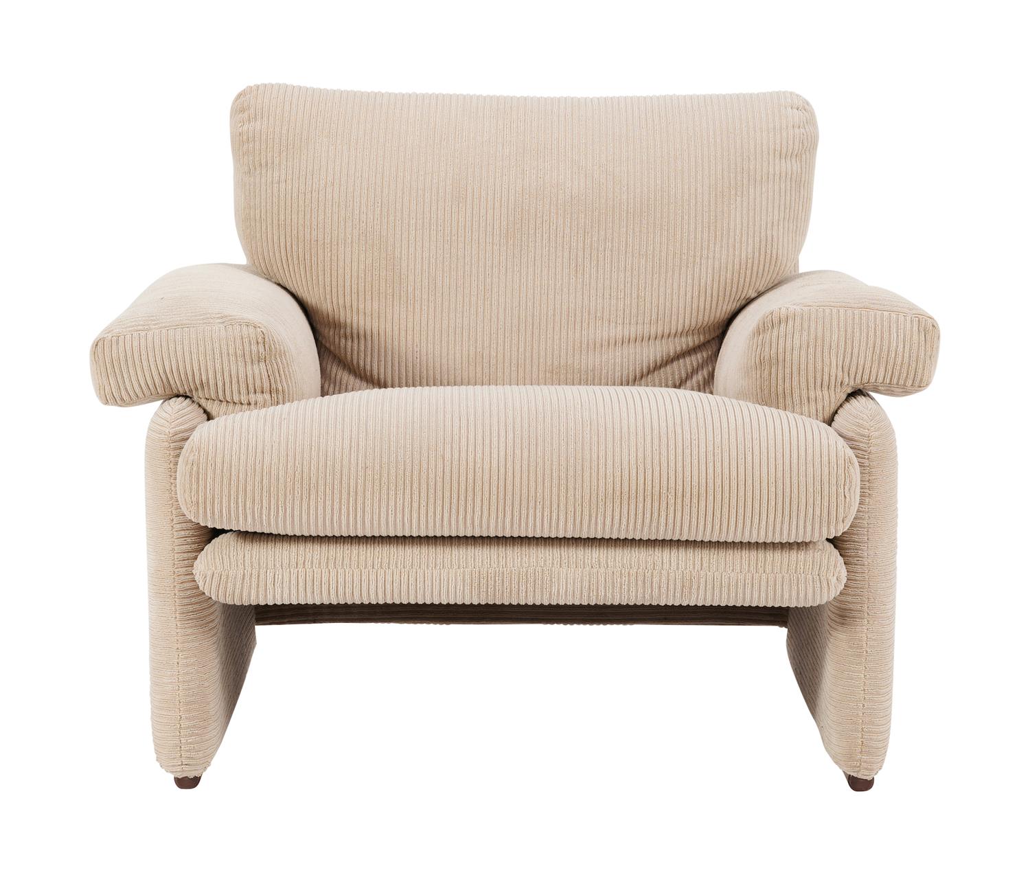 Reupholstered in beige corduroy.