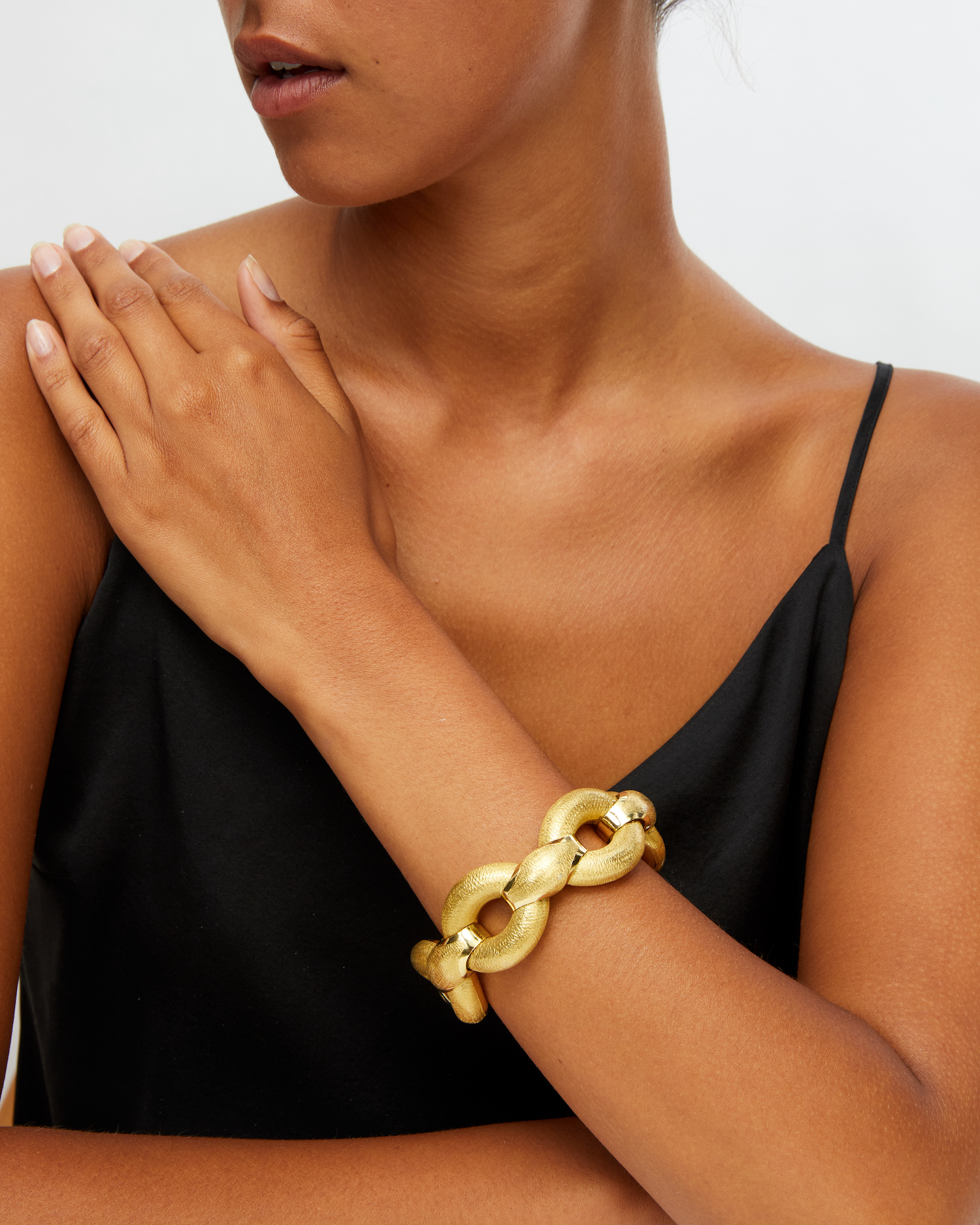 Modelled as a line of textured links, inner circumference 220mm, gross weight approximately 100 grams.