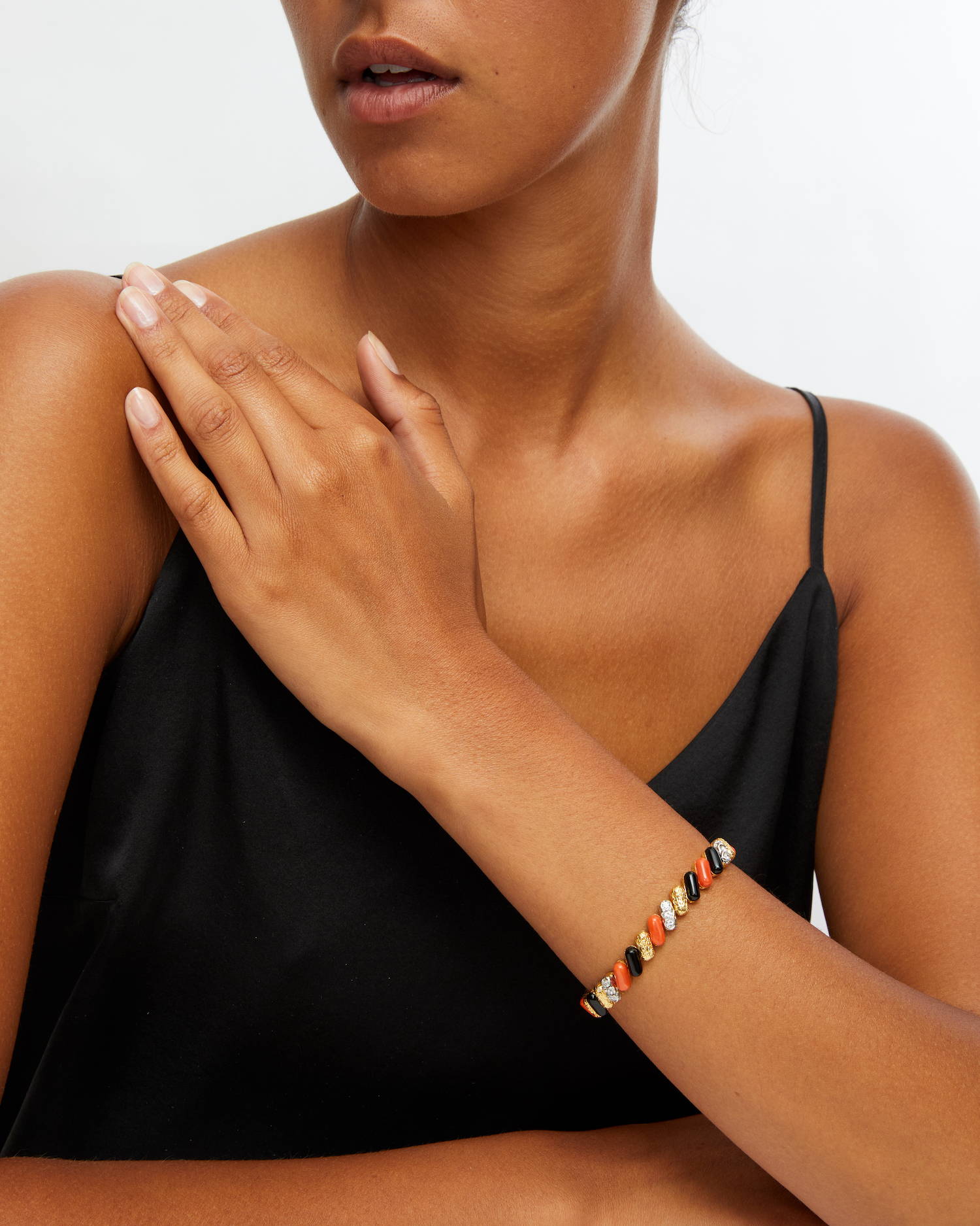FRED PARIS DIAMOND, CORAL AND ONYX BRACELET