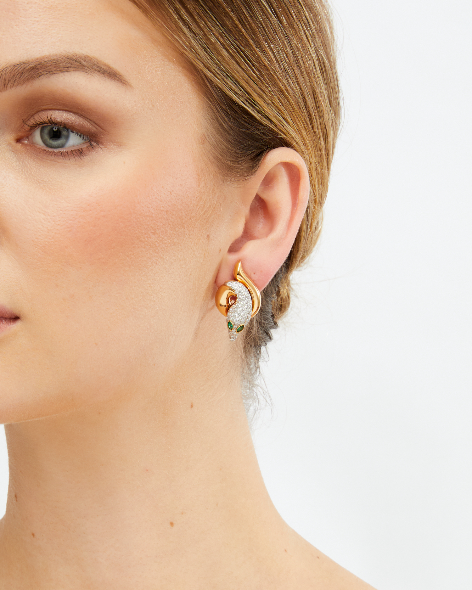 BULGARI PAIR OF EMERALD AND DIAMOND 'SERPENTI' EARRINGS