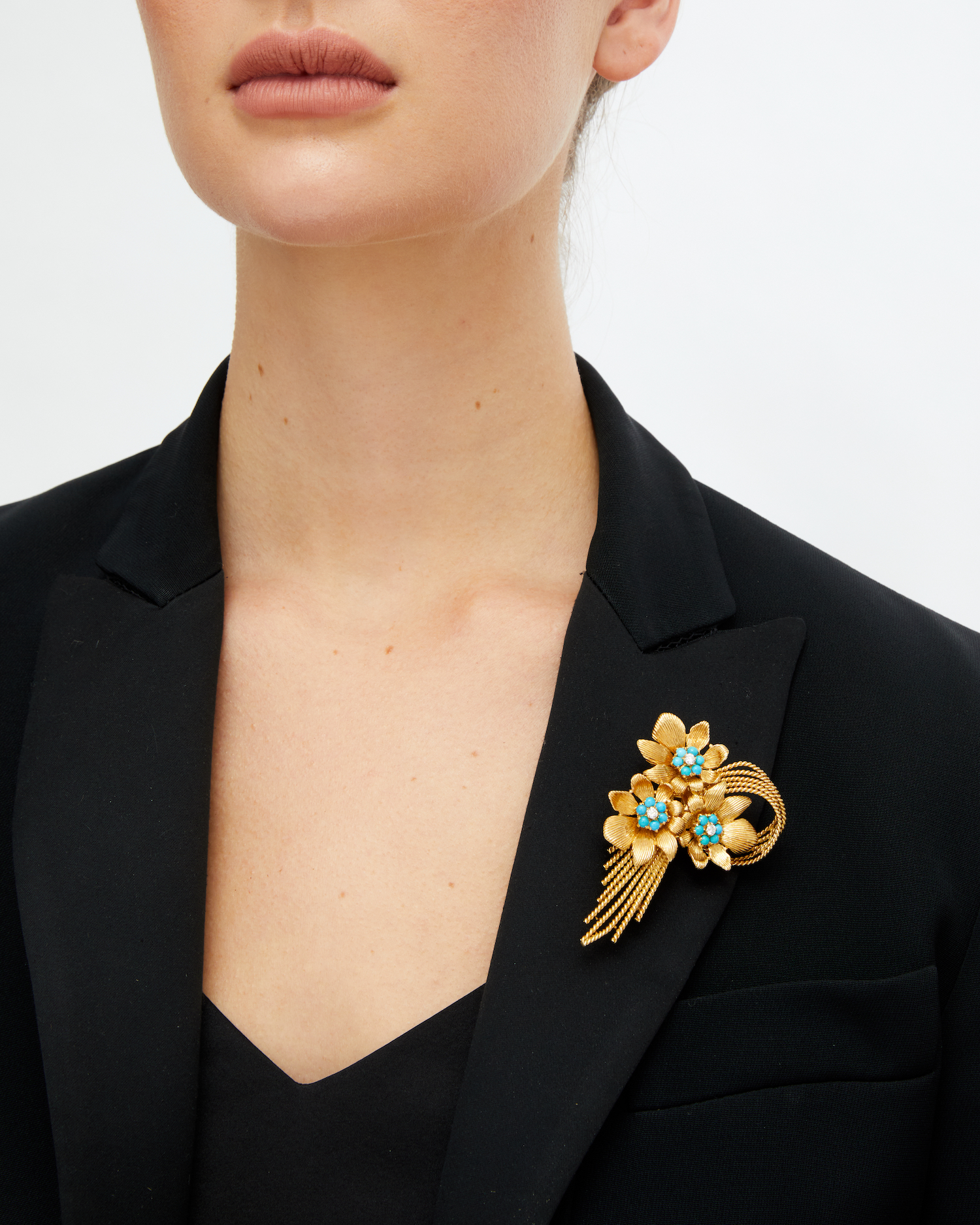 KUTCHINSKY TURQUOISE AND DIAMOND BROOCH, LONDON, CIRCA 1962