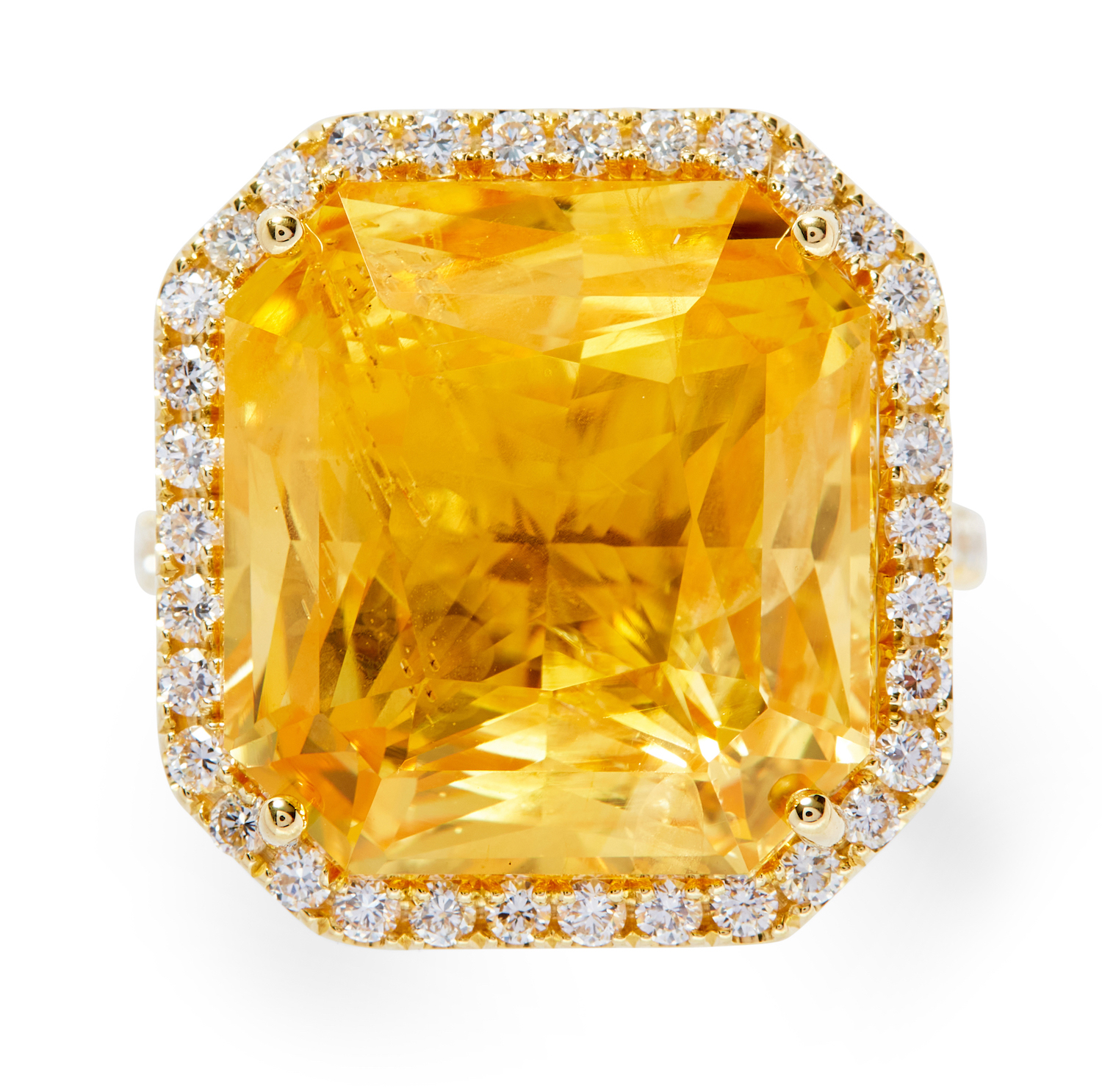 Accompanied by a GIA report numbered 5221508602 , dated 13 July 2022, stating that the 23.24 carat orangy yellow sapphire is natural, with no indications of heating, of Sri Lanka origin.