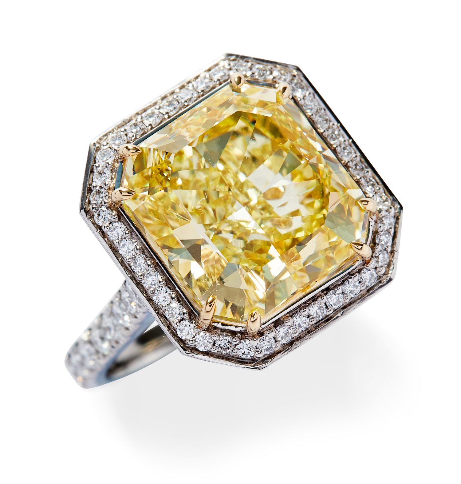 A MAGNIFICENT FANCY YELLOW DIAMOND RING