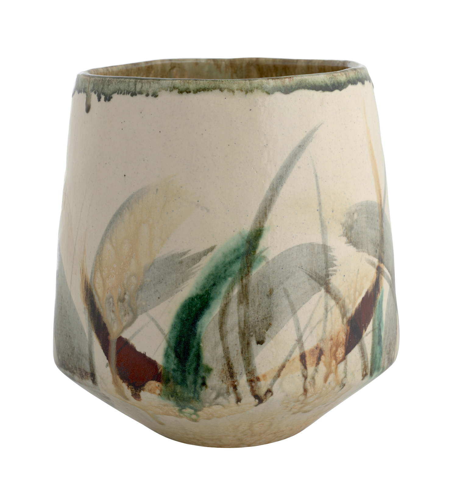 high walled bowl, mid-fired multi glazed ceramic