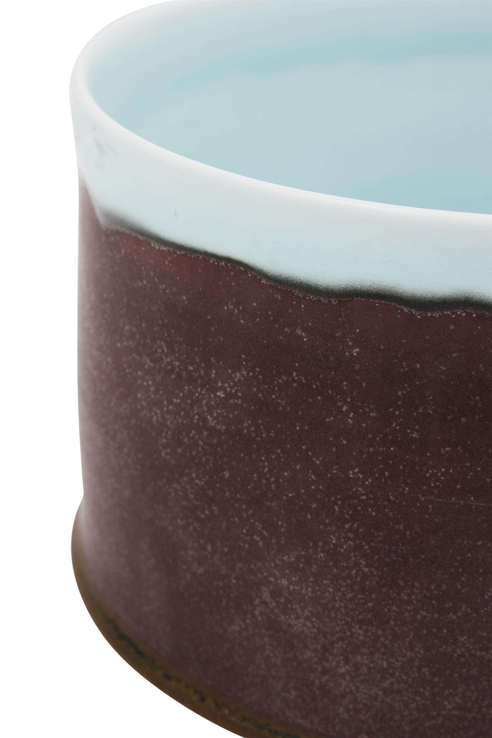 porcelain, saturated iron glaze with celadon interior