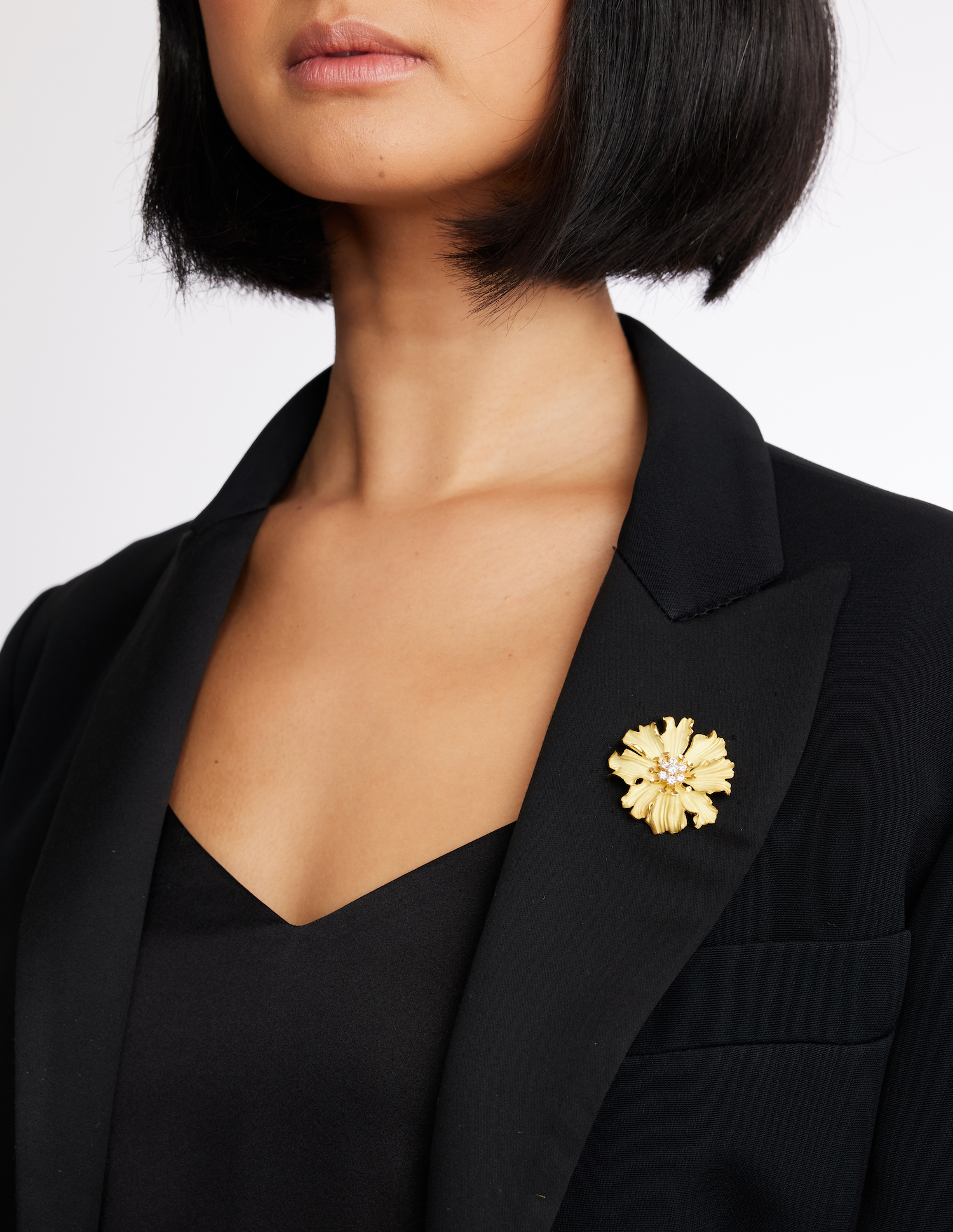 Designed as a flowerhead, the stamens claw-set with a cluster of brilliant-cut diamonds framed by textured petals, the diamonds together weighing approximately 0.59 carats, diameter 35mm, signed Tiffany & Co.