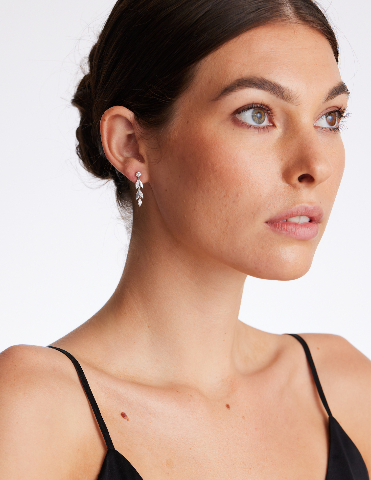 Each terminating on a claw-set marquise-shaped diamond supported from a detachable brilliant-cut diamond stud between a line of foliate motifs decorated at intervals with pavé-set diamonds, the diamonds together weighing approximately 0.69 carats, mounted in 18ct white gold, surmount may be worn as an ear stud, length 24mm, post and scroll fittings, signed T&Co. for Tiffany & Co.