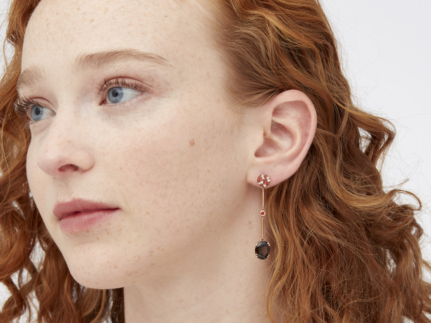 MAUBOUSSIN, A PAIR OF SMOKY QUARTZ, SAPPHIRE AND DIAMOND 'PLAISIR D'AMOUR' EARRINGS IN 18CT ROSE GOLD,