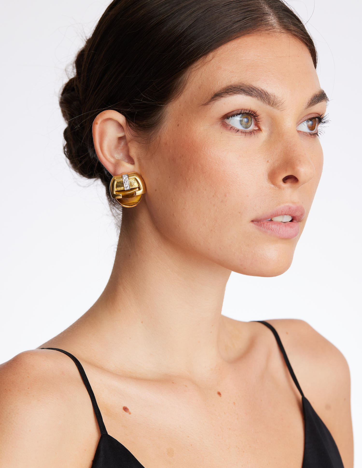 DAVID WEBB PAIR 18CT GOLD, TIGER'S EYE AND DIAMOND EAR CLIPS