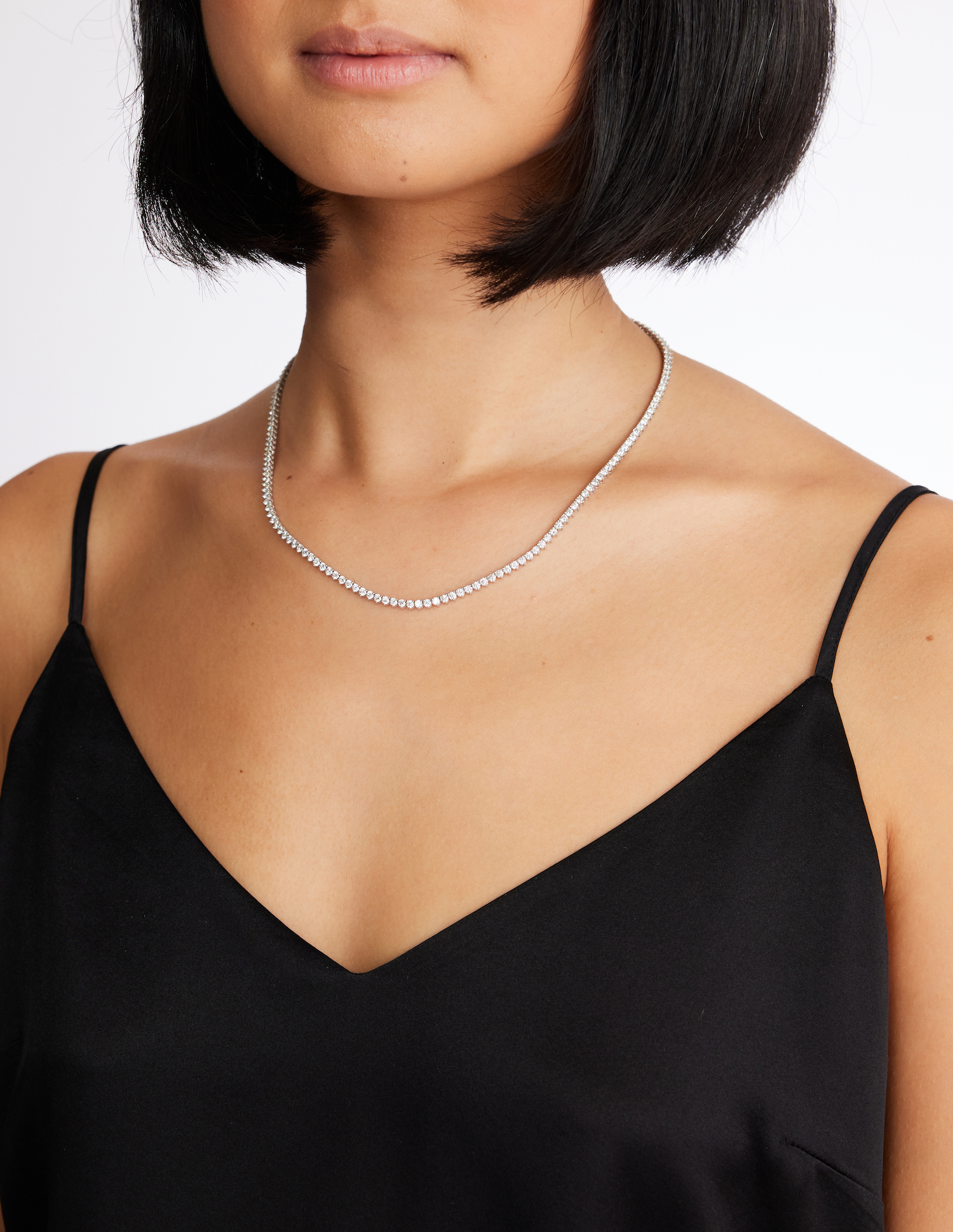 Composed of a line of 167 claw-set brilliant-cut diamonds completed by a concealed box clasp, the diamonds together weighing approximately 7.40 carats, mounted in 14ct white gold, length 430mm.