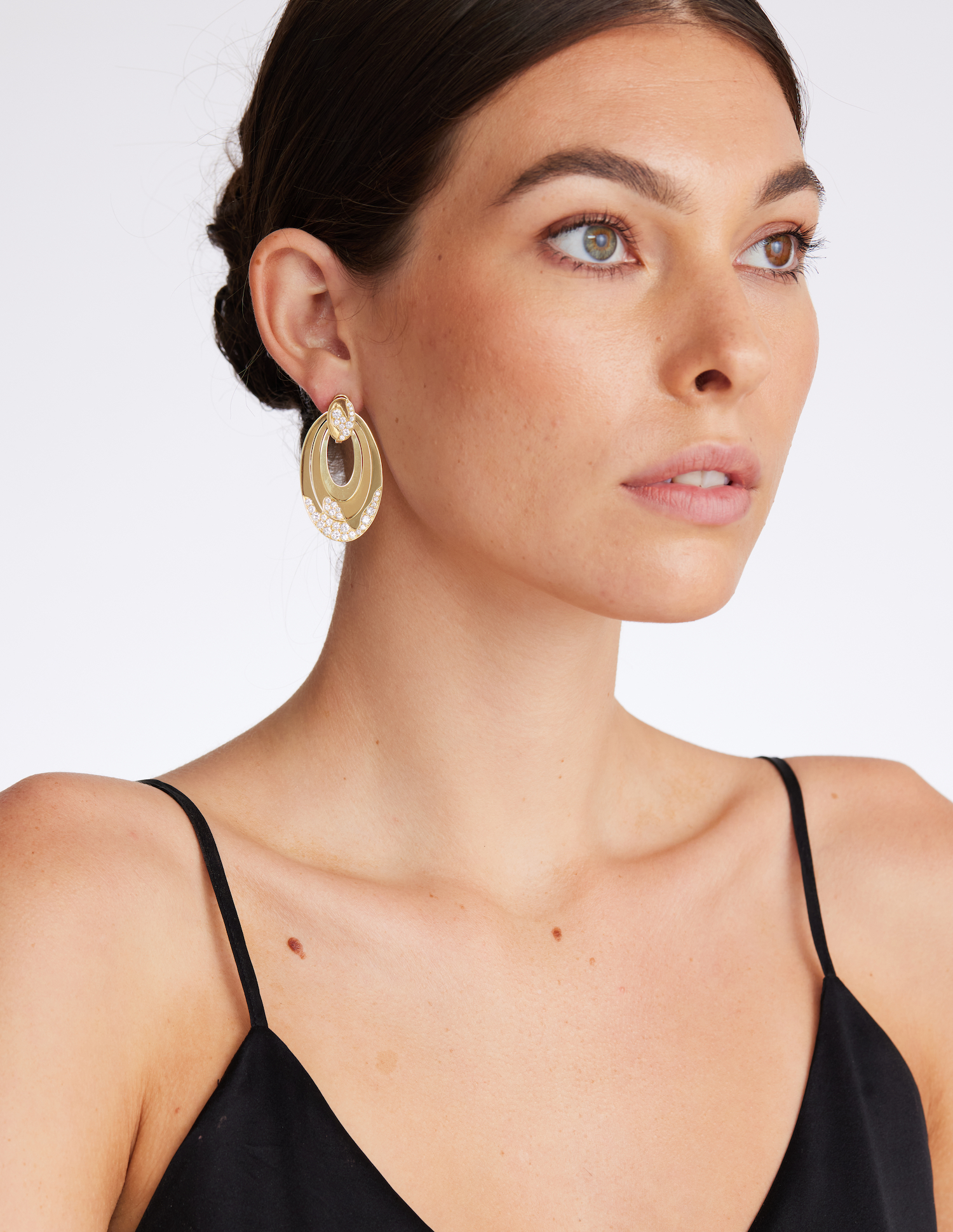Each designed as three concentric openwork elongated oval plaques pavé-set at intervals with brilliant-cut diamonds surmounted by an oval plaque similarly set, the small diamonds together weighing approximately 1.80 carats, length 40mm, clip fittings, Italian workshop registration marks, signed Bulgari.