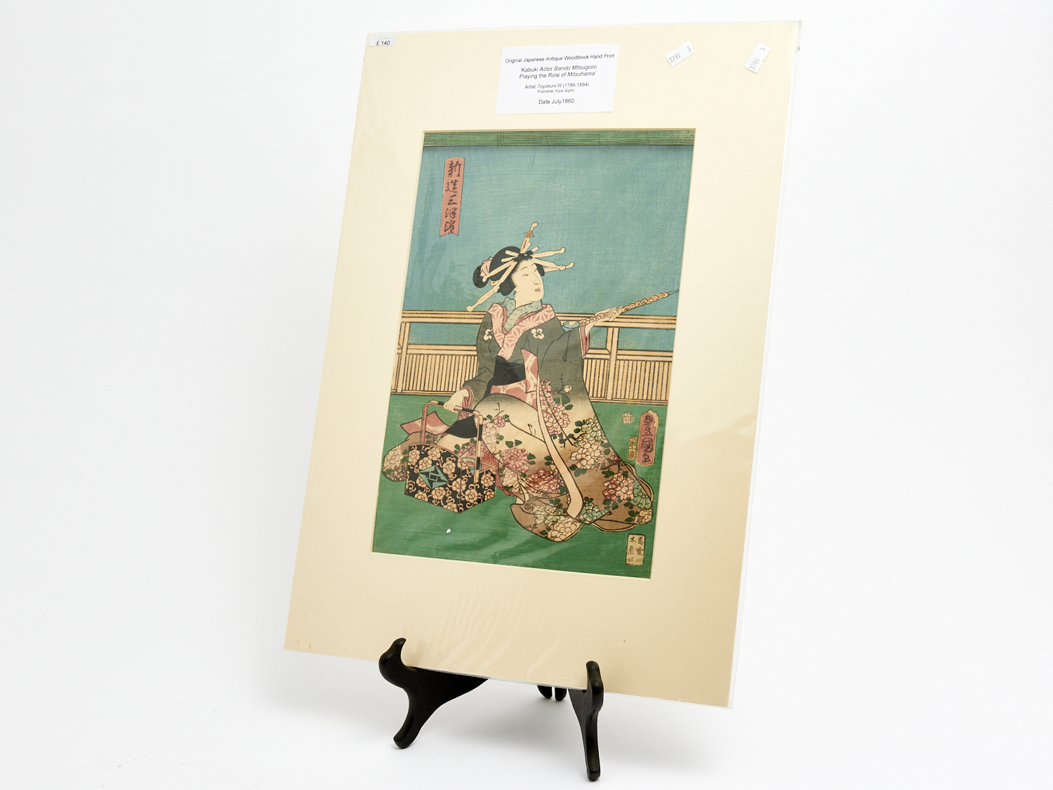 AN OBAN SIZE ACTOR PRINT, COURTESAN WITH PIPE TOYOKUNI III 53.5 X 38.5CM (TOTAL SIZE), LEONARD JOEL LOCAL DELIVERY: SMALL