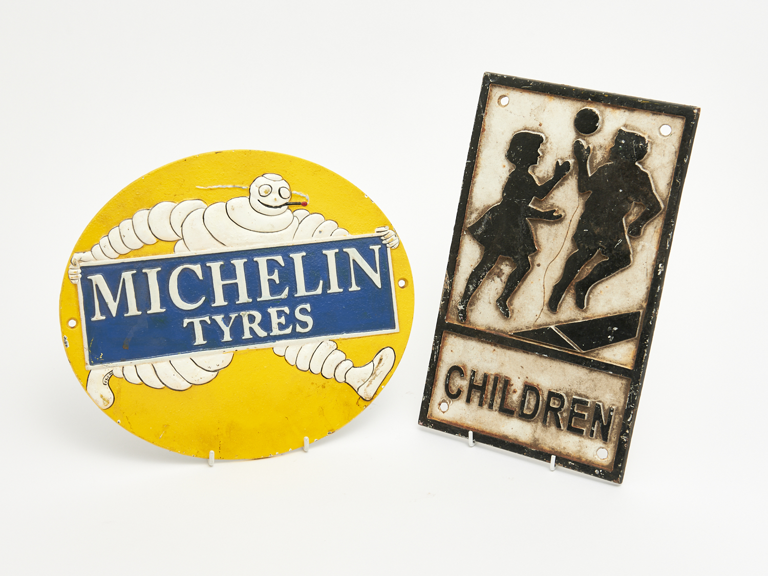 TWO CAST IRON SIGNS H.25CM X W.29CM (LARGEST), LEONARD JOEL LOCAL DELIVERY: MEDIUM