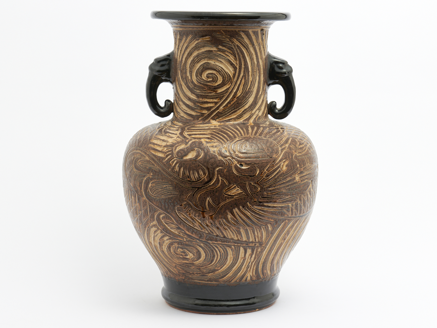 A CERAMIC DRAGON VASE WITH ELEPHANT HANDLES H.47CM, LEONARD JOEL LOCAL DELIVERY: MEDIUM