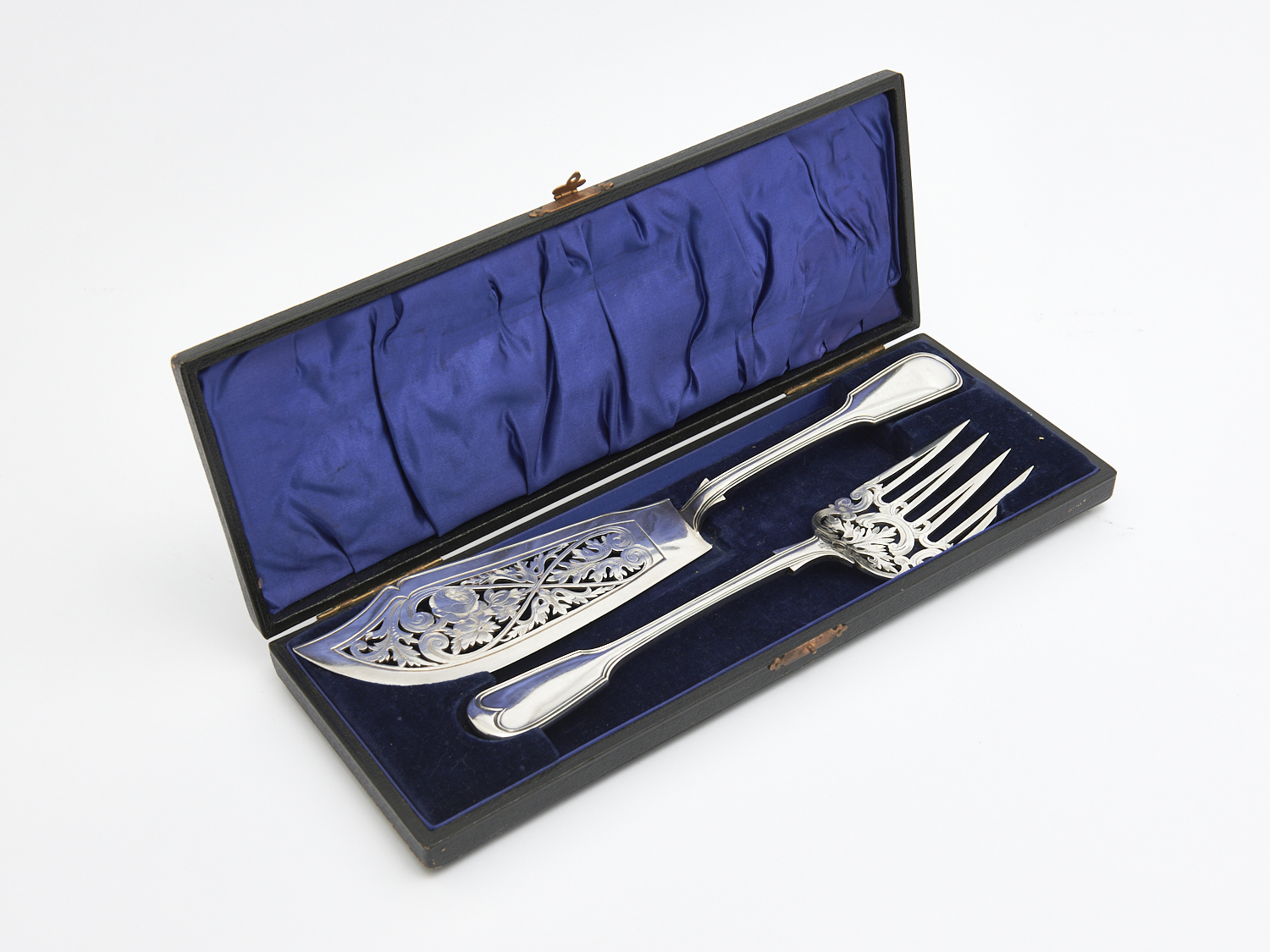 A PAIR OF VICTORIAN PLATED FISH SERVERS BY BARNARD BROTHERS, BOXED L.33.5CM (LONGEST), LEONARD JOEL LOCAL DELIVERY: SMALL