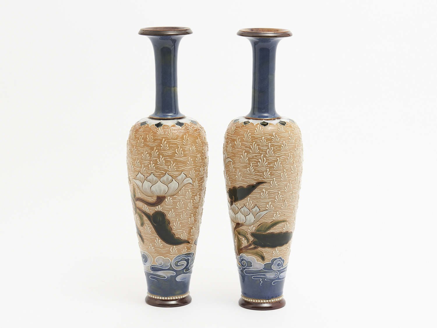 A PAIR OF DOULTON LAMBETH  STONEWARE VASES H.39CM, LEONARD JOEL LOCAL DELIVERY: MEDIUM