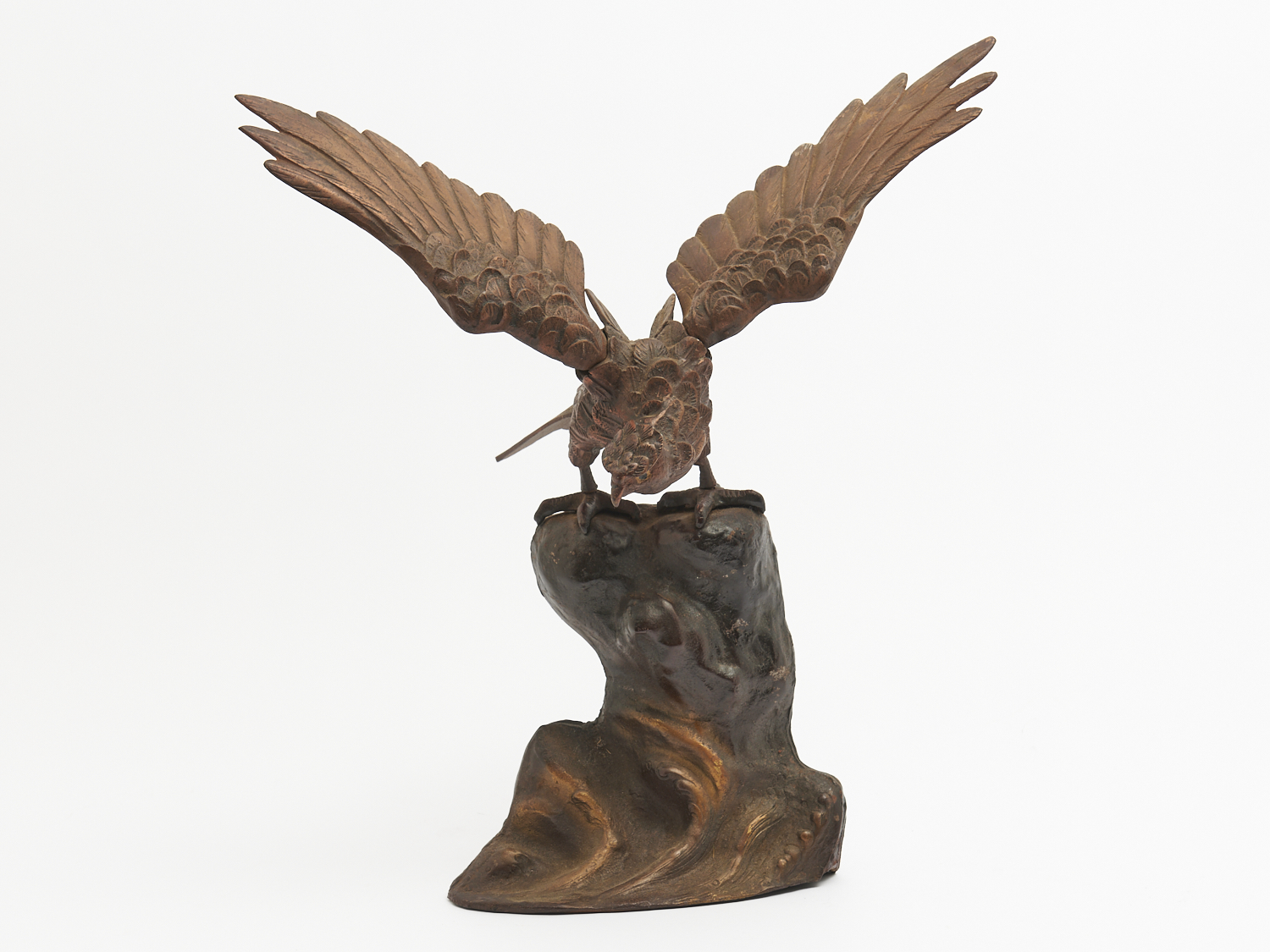 A VINTAGE BRONZED CAST IRON EAGLE FIGURE ON NATURALISTIC ROCKY OUTCROP BASE H.50CM, LEONARD JOEL LOCAL DELIVERY: MEDIUM