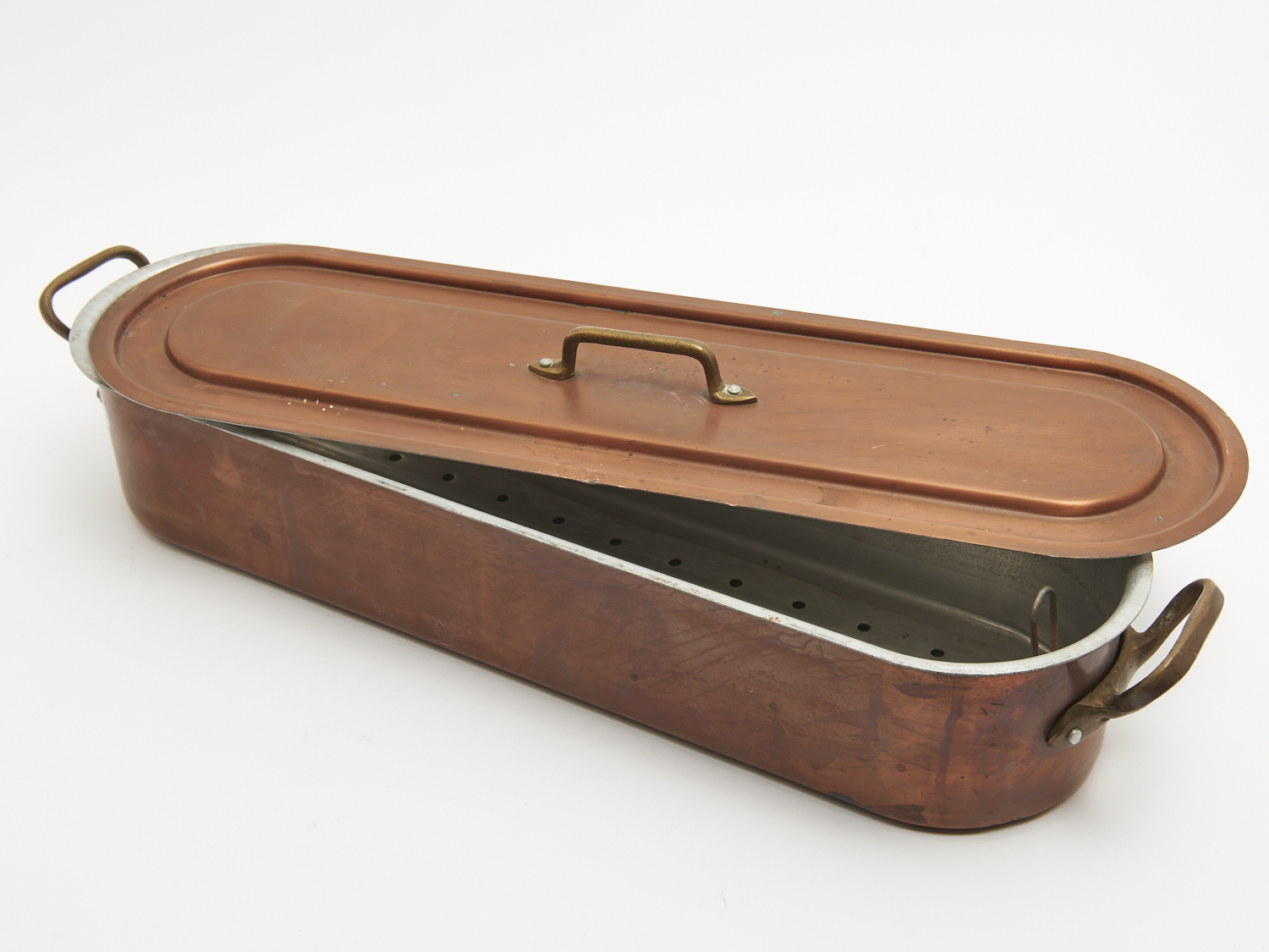 A COPPER LIDDED FISH PAN L.62CM, LEONARD JOEL LOCAL DELIVERY: SMALL