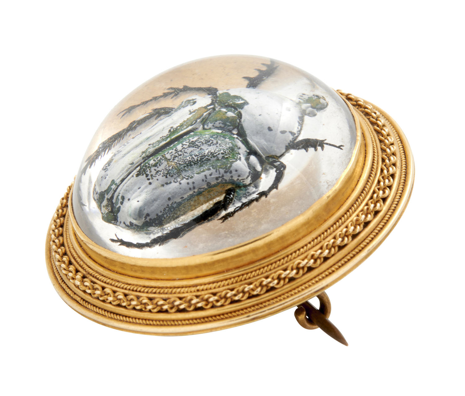 The domed reverse intaglio depicting a scarab beetle, within a decorative border, diameter approximately 36mm.