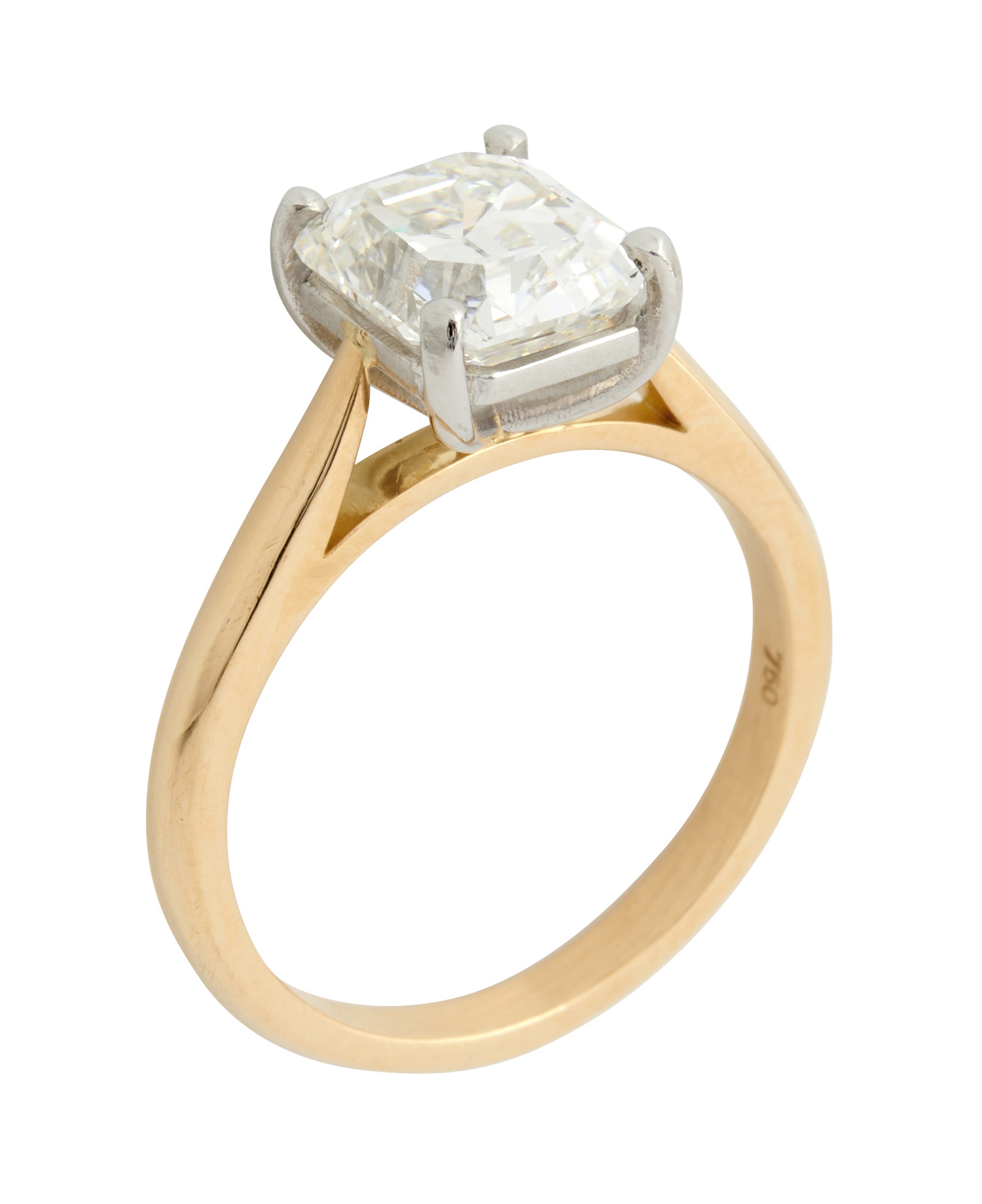 Claw-set with a Victorian-cut diamond weighing approximately 2.67 carats, size M.