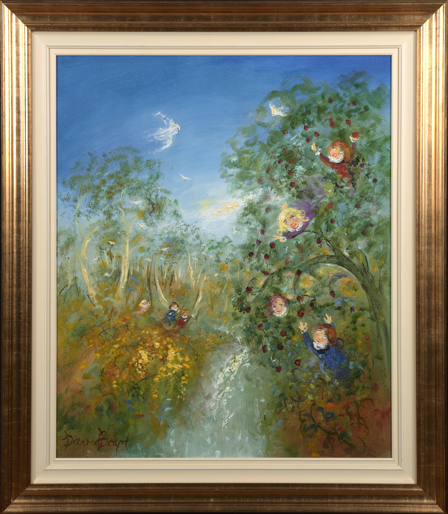 Children In An Apple Tree Above a Waterfall On The Edge Of The Bush