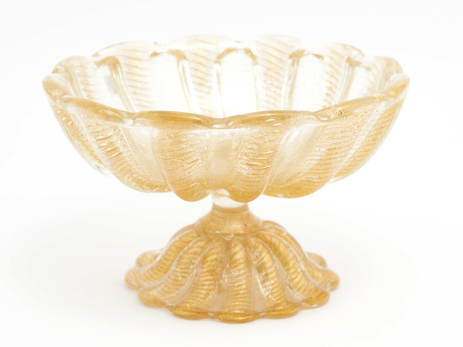 A MURANO AIR BUBBLE CONTROLLED ART GLASS COMPORT WITH GOLD FOIL INCLUSIONS, 16CM HIGH, LEONARD JOEL LOCAL DELIVERY: SMALL.