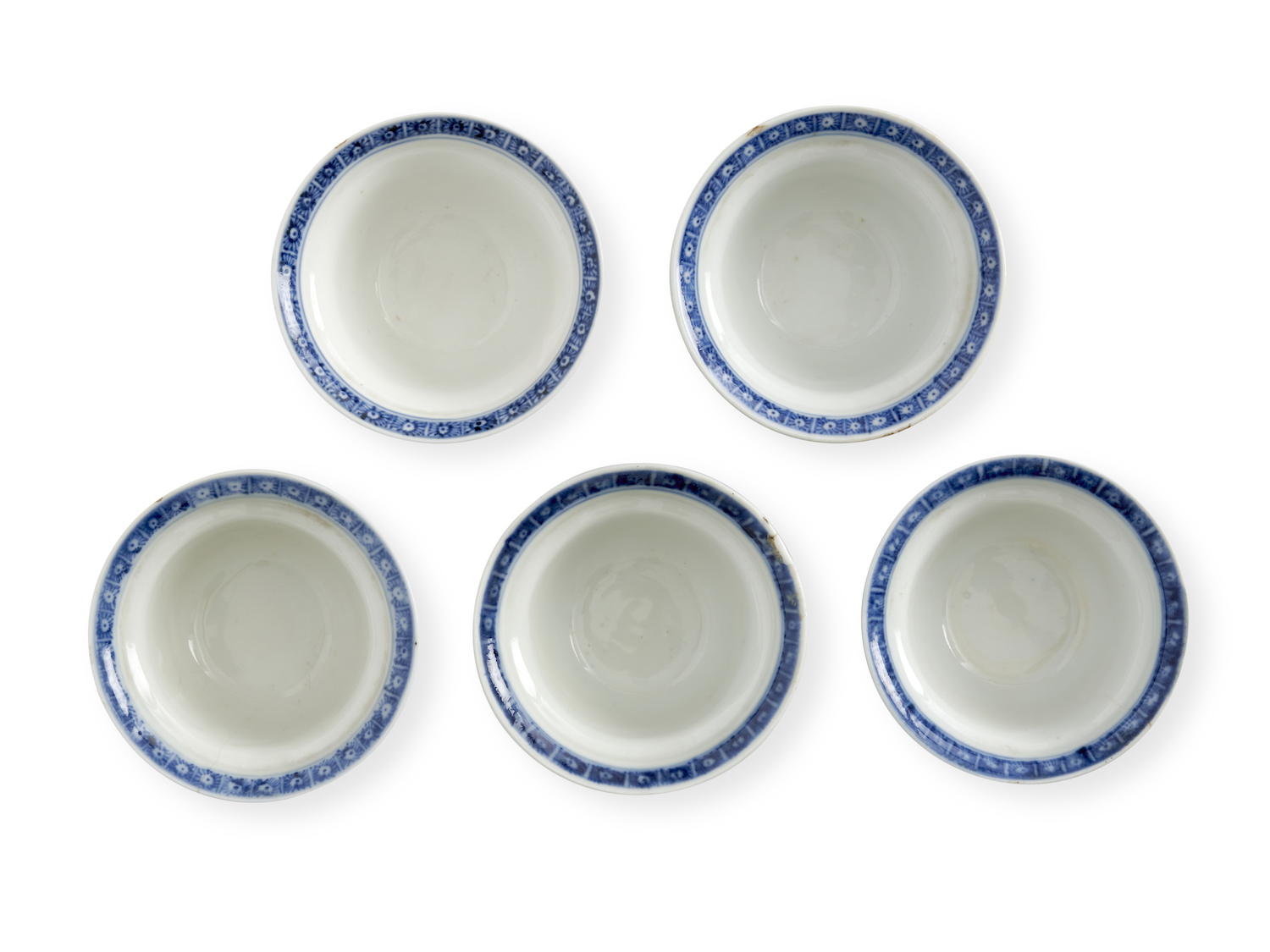 FIVE CHINESE BLUE AND WHITE TEA BOWLS