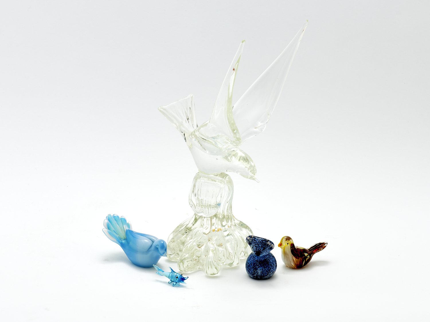 FIVE ART GLASS ANIMALS INCLUDING A MURANO SEAGULL H.36.5CM (TALLEST), LEONARD JOEL DELIVERY SIZE: MEDIUM
